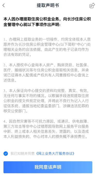 3.点击”业务“-”我要提取“-”同意该声明“