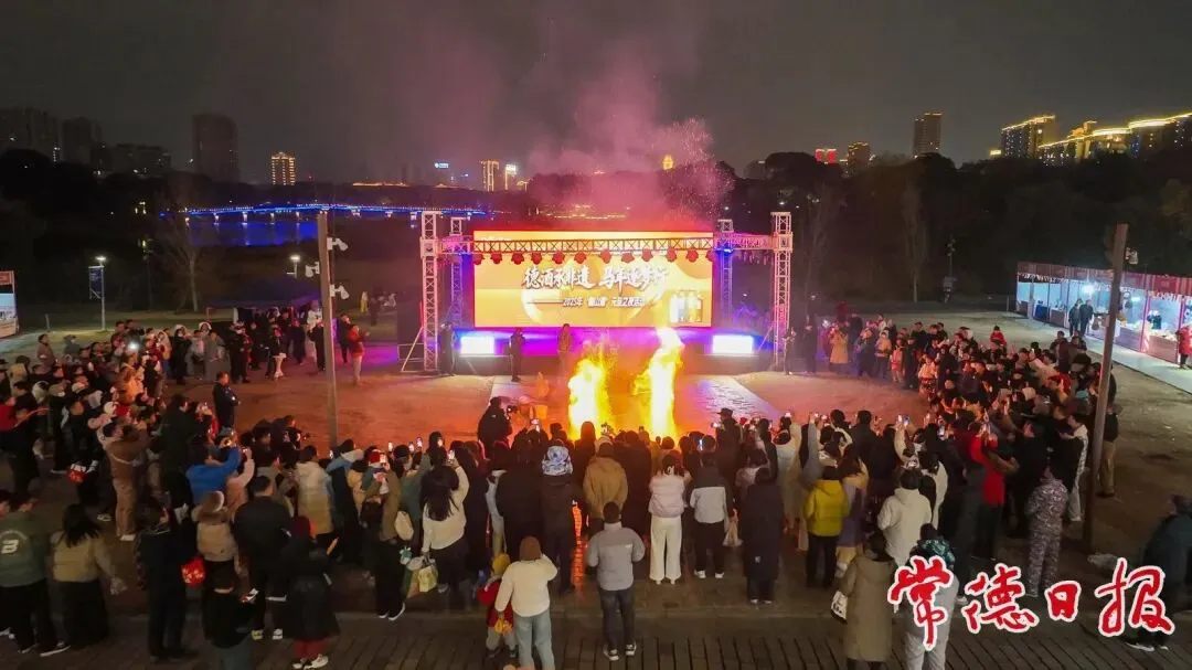 元旦节当晚,常德河街的精彩被推向高潮。德山酒元旦之夜专场活动,以一场炽热的非遗表演盛宴,点燃了常德2026年的第一把“火”。惊险的火壶舞、绚烂的喷火技艺、灵动穿梭的鱼灯……这些传统绝艺在夜幕下交织升腾,将红红火火、兴旺吉祥的美好祝愿,传递给现场的每一位市民。