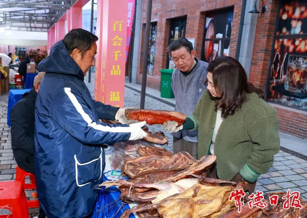 “这很有我们小时候的年味!”1月2日,常德河街春秋广场前,63岁的市民李先生提着刚买的腊肉香肠,感慨不已。他的身后,一排排年货摊位沿街铺开,石门腊肉油光发亮,手工糍粑热气腾腾,坚果炒货香气四溢,糖画艺人手腕翻转间,晶莹的生肖图案便跃然而出……元旦当天,常德河街以其醇厚地道的“老味道”与红火热闹的新年氛围,吸引游客超十万人次,沉浸式体验传统年味。