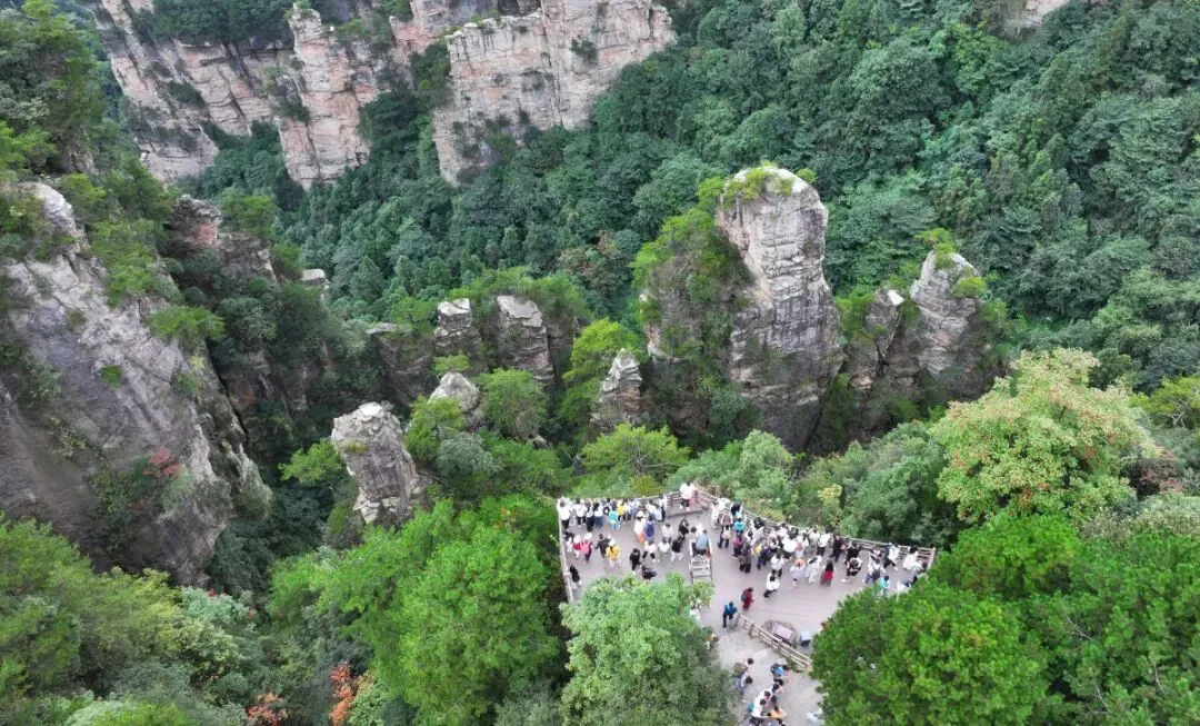 游客在湖南张家界国家森林公园杨家界景区游览。吴勇兵摄