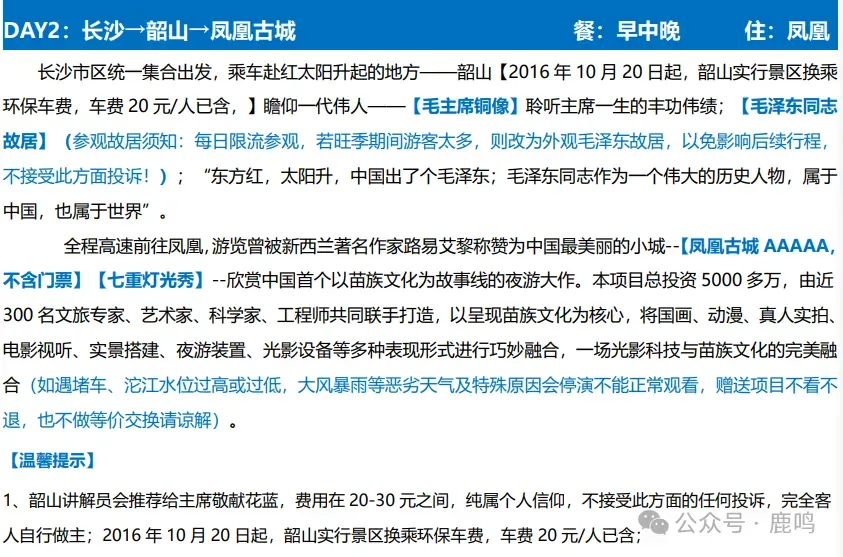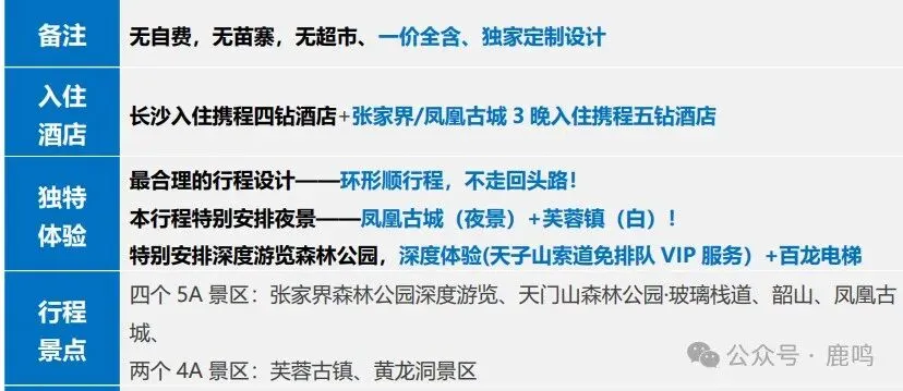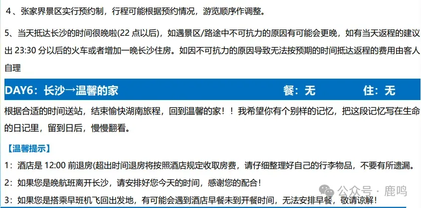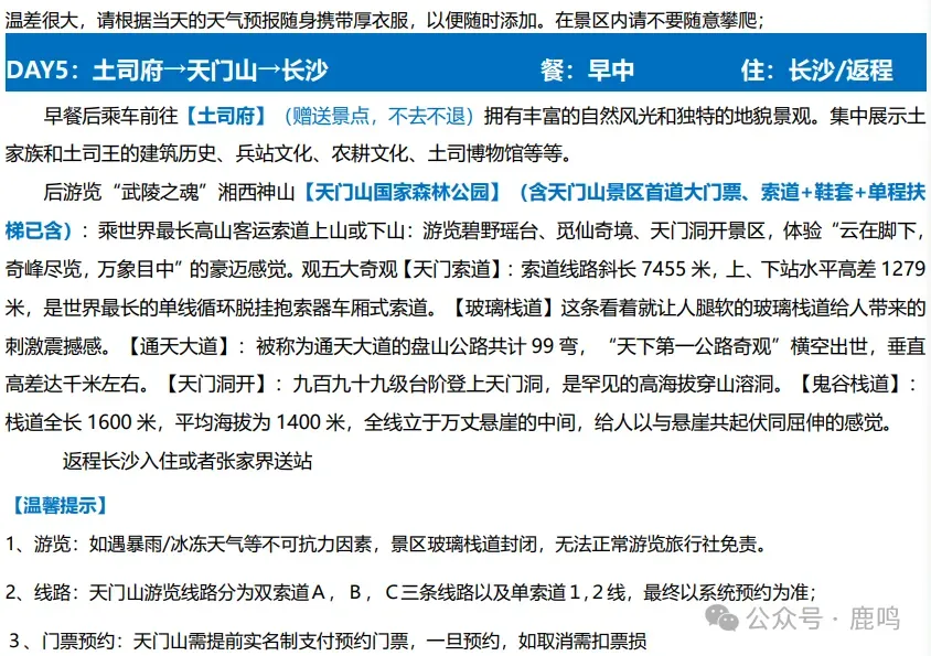 6天5晚,适合老人家和小孩子的行程!全程无自费无苗寨无超市,更干净的张家界!
