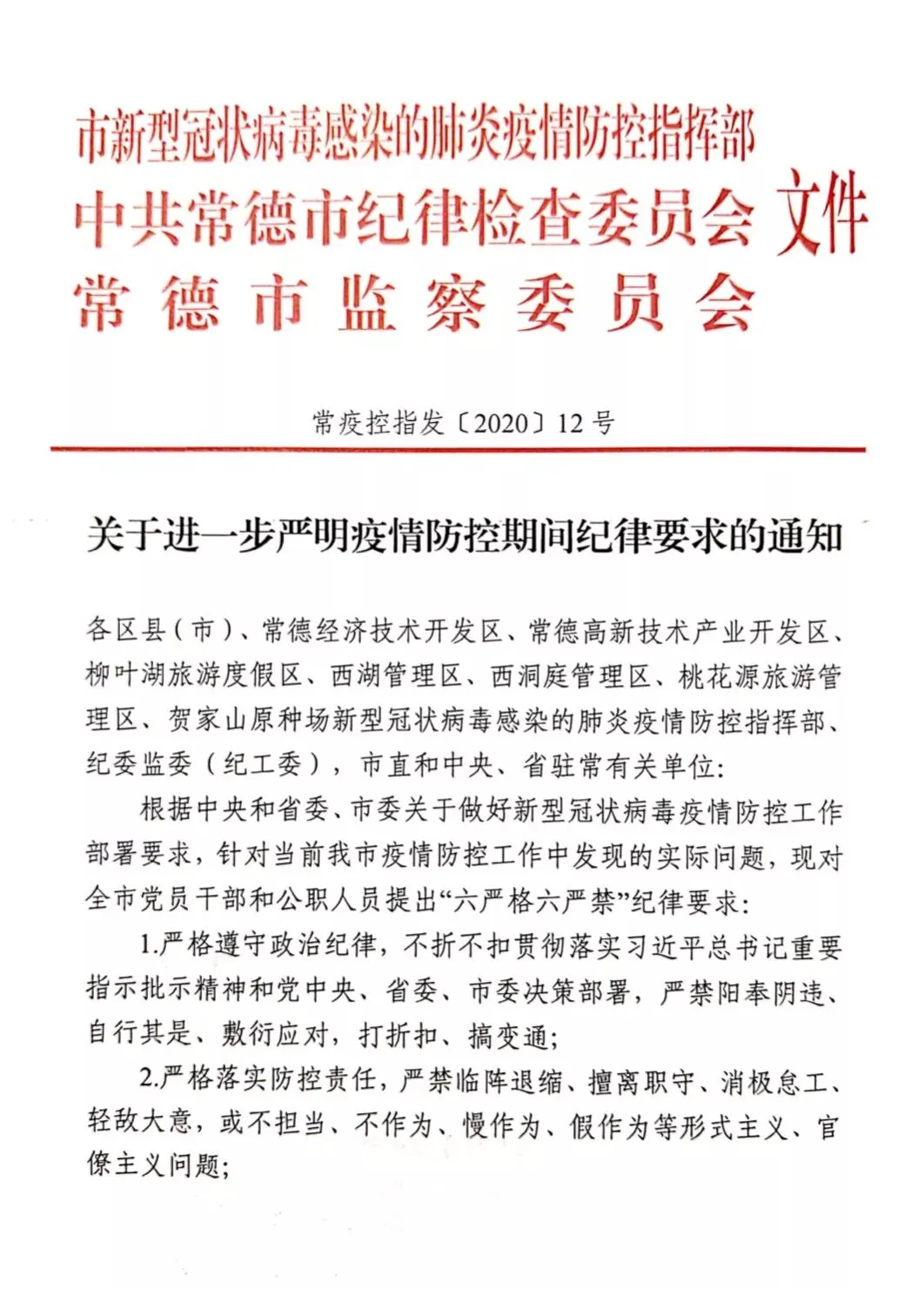 常德市发布通知:“六严格六严禁” 进一步严明疫情防控期间纪律要求