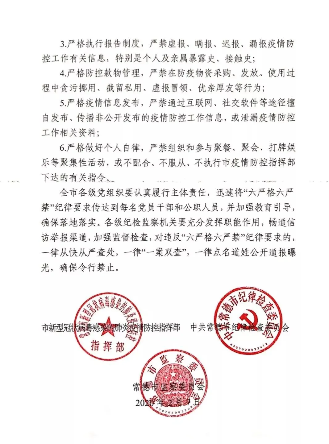 >常德市发布通知:“六严格六严禁” 进一步严明疫情防控期间纪律要求
