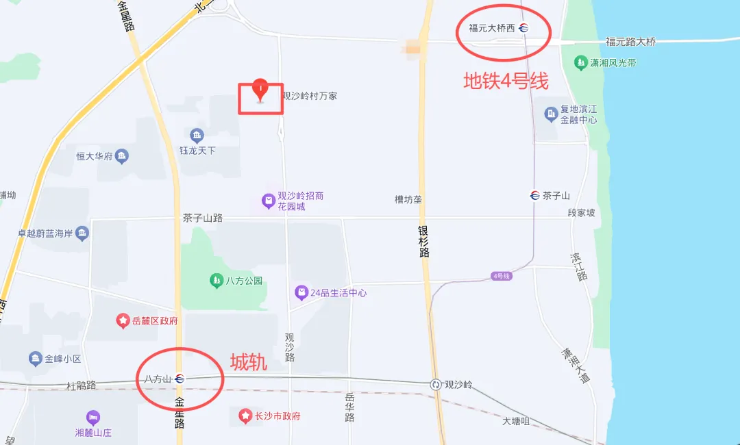 直线距地铁6号线3km,距4号线2km,距规划10号线仅1km;直线距长沙站9.5km,距长沙南站23km
