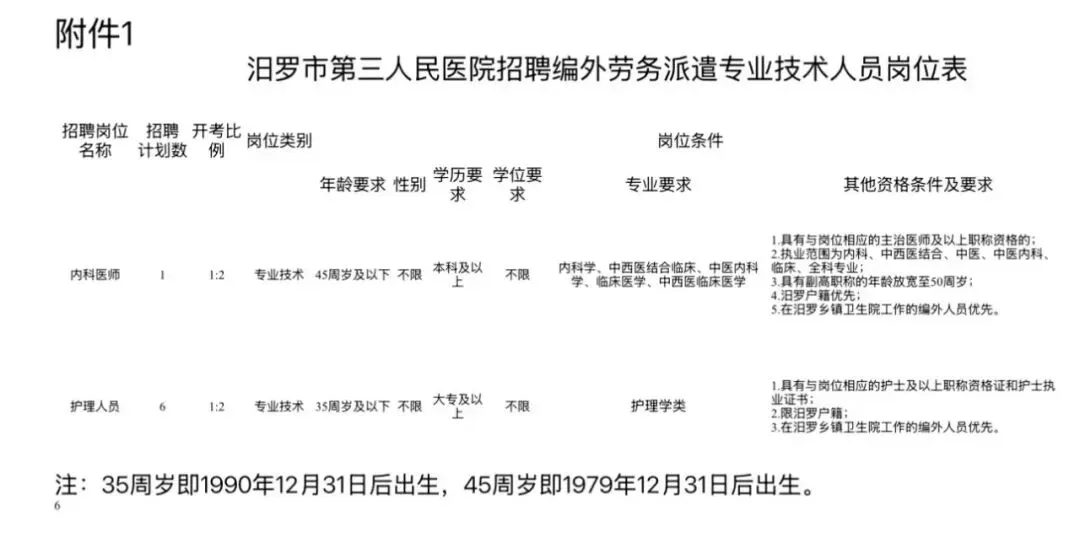 因业务发展需要,经有关部门批准,汨罗市第三人民医院(汨罗市长乐镇中心卫生院)面向社会公开招聘7名编外劳务派遣制专业技术人员。