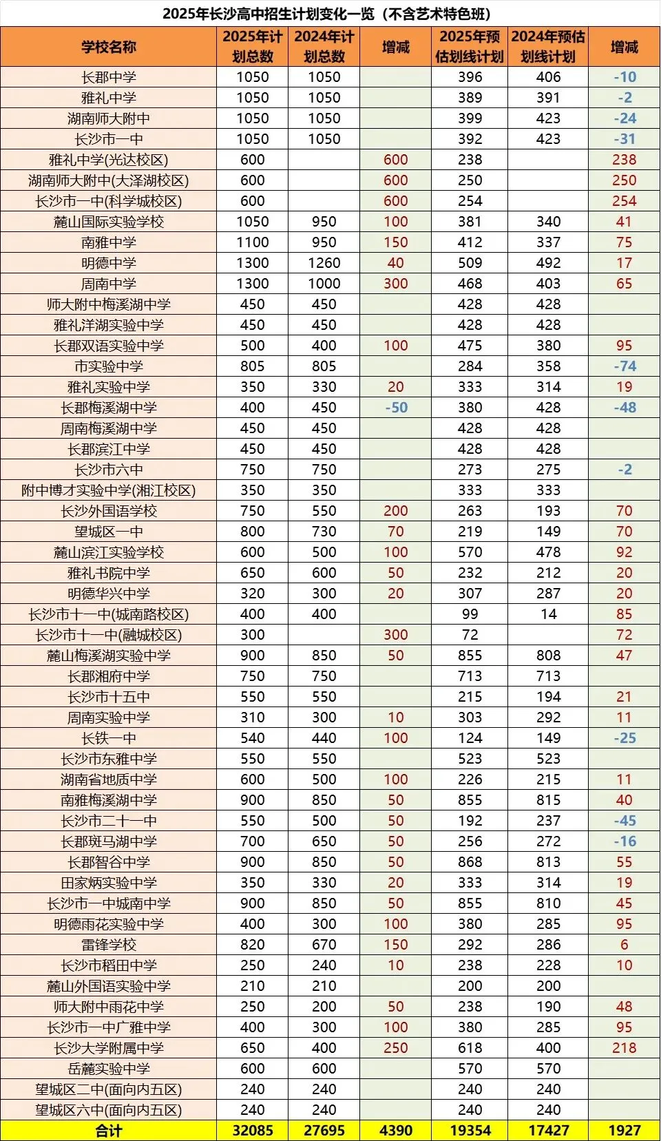 今年中招网传,长沙四大老校区增加400人,四大新校区增加900人,南雅新校区和长郡会展如果招生会增加至少1200人,艺术班去年招生1070人,所以,今年公办子弟普通高中就是按照去年招生计划,招生36000人是有保障的。如果还像2025年一样各高中挤学位,37500个学位问题不大。