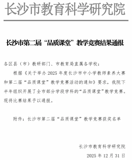 【未来教师成长体系】喜报:在长沙市第二届“品质课堂”教学竞赛中,我校6名教师斩获一等奖!