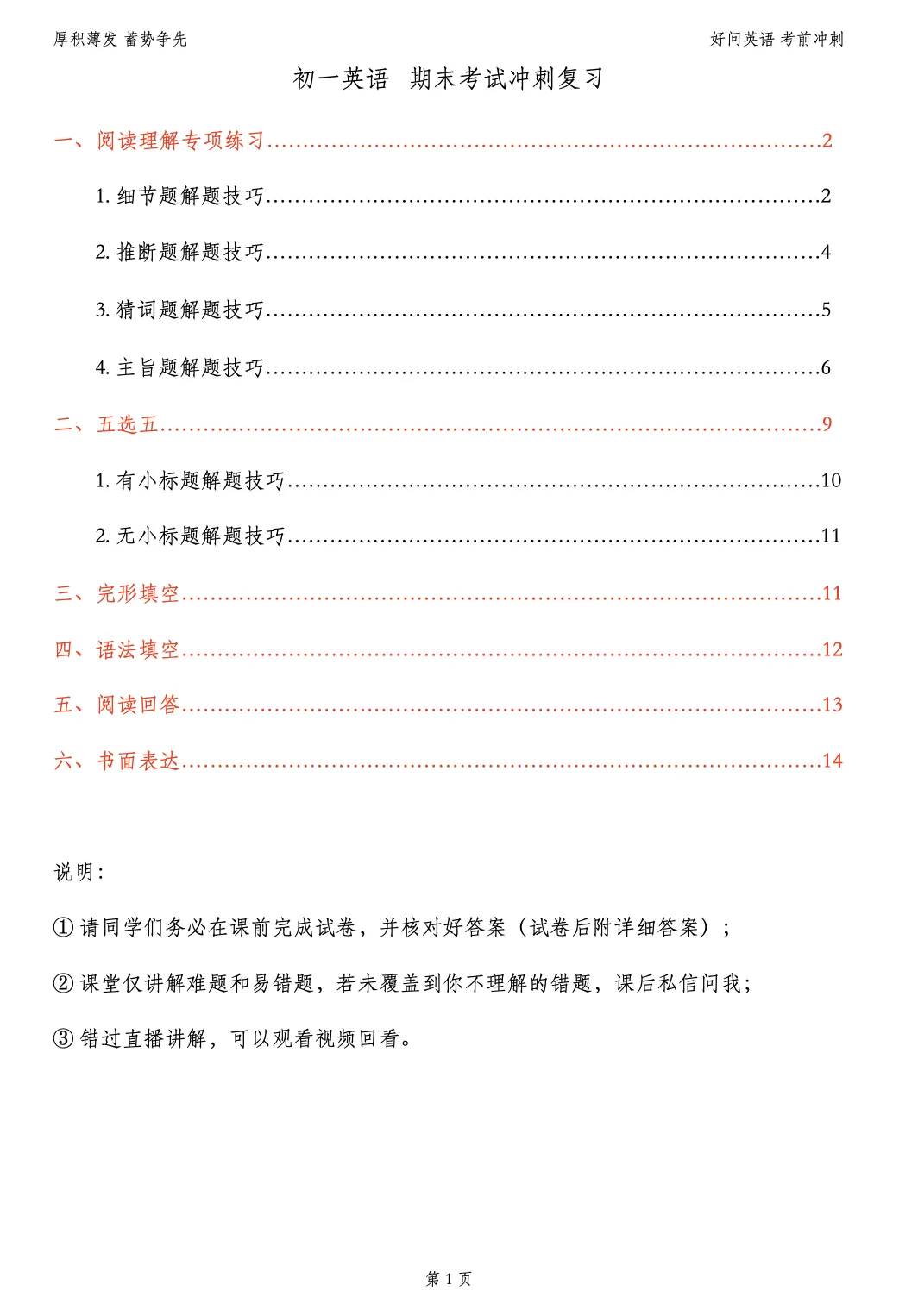 我已经把完整的《七上各单元核心知识梳理》和《初一期末20天冲刺计划表》都准备好了,需要的话可以找我要。咱们一起帮孩子打好初中第一仗!