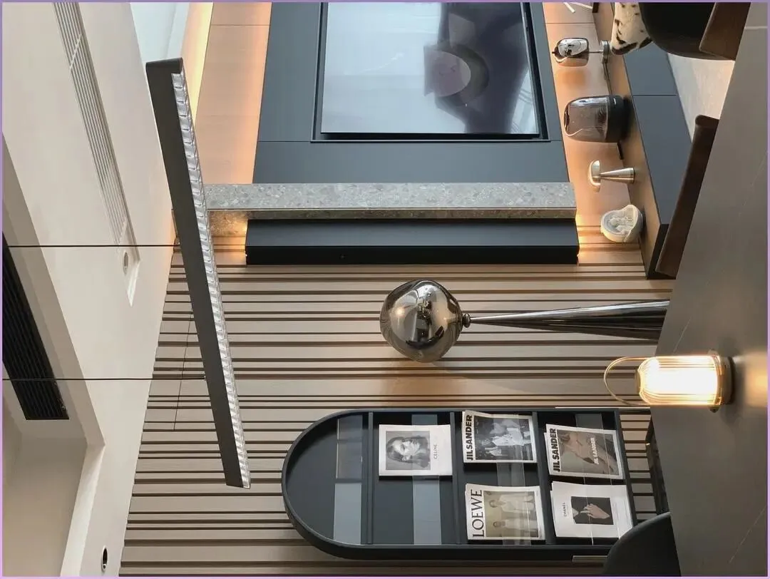他们家做法是:顶上用线性灯+筒灯打基础光,墙边、柜体里埋灯带当氛围光。灯具本身控制在中档价位,没有迷信所谓的“艺术灯”,一套下来和传统吊顶+主灯的价差其实就几千块。