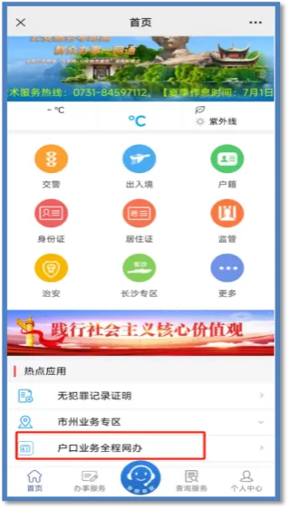 “我的长沙”APP内“户口服务”功能