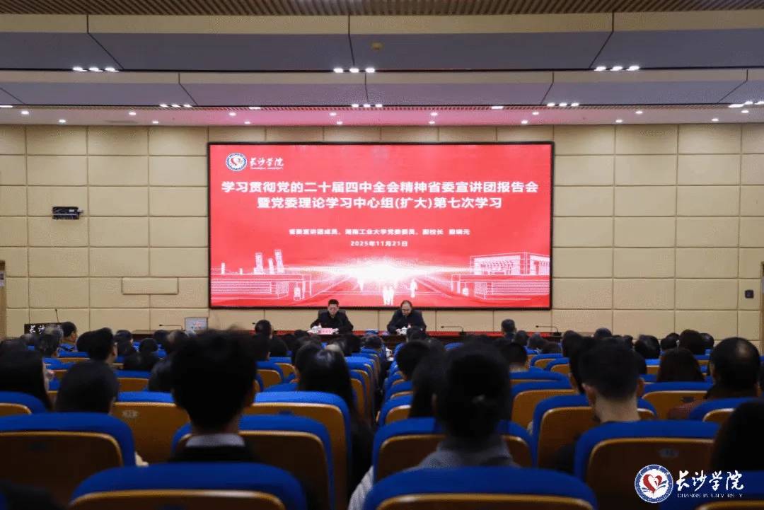 11月21日,学习贯彻党的二十届四中全会精神省委宣讲团报告会暨党委理论学习中心组(扩大)第七次学习在我校致远楼学术报告厅举行,省委宣讲团成员,湖南工业大学党委委员、副校长殷晓元教授作宣讲报告;12月9日,全国高校“中国共产党人精神谱系”长沙学院宣讲在致远楼学术报告厅举行,湖南省“80、90、00”青年讲师团成员、我校马克思主义学院副教授向伟应邀作《弘扬中国共产党人精神谱系 做新时代传承伟大精神的生力军》的宣讲。
