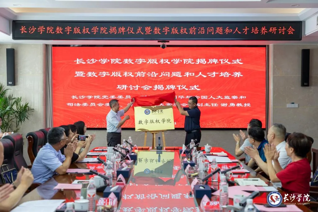 6月7日,长沙学院数字版权学院挂牌仪式暨数字版权前沿问题和人才培养论证会在长盛楼4001会议室举行,标志着全国高校首家数字版权学院正式成立。