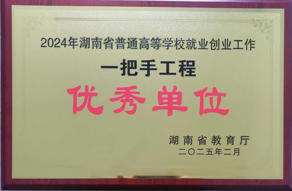 根据湖南省教育厅下发的《关于2024 年湖南省普通高等学校就业创业工作“一把手工程”优秀单位的通报》(湘教通〔2025〕33号),我校获评优秀单位,这是我校连续五次获得该项荣誉。
