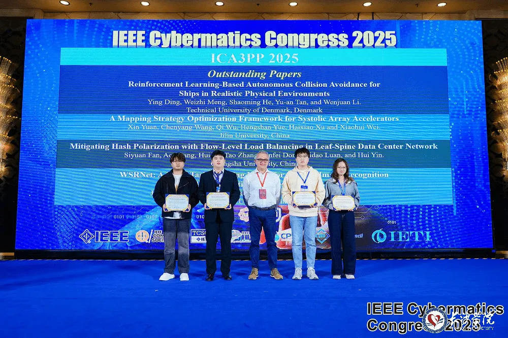在2025年IEEE国际人机物智能大会上,我校计算机科学与工程学院23级本科生樊思远牵头完成的论文《Mitigating Hash Polarization with Flow-Level Load Balancing in Leaf-Spine Data Center Network》从全球600余篇投稿中突围,获评大会仅设4项的优秀论文奖(Outstanding Paper Award)。这是学院本科生学术论文首次摘得此类国际奖项。樊思远还在大会核心会议——第25届并行处理算法与体系结构国际会议(中国计算机学会CCF推荐C类会议)上全程用英文作分组报告,展现出扎实的学术功底与国际交流能力。