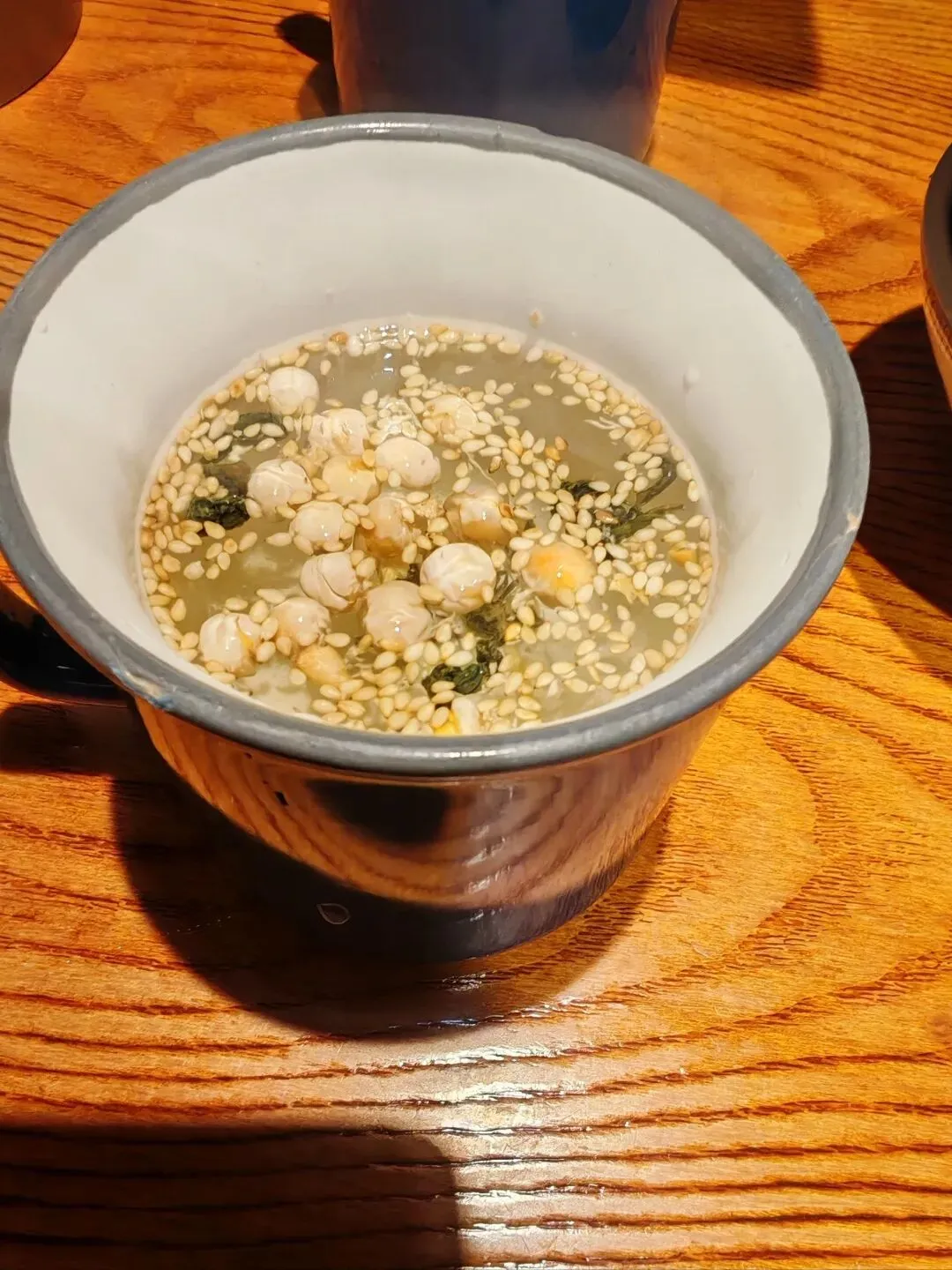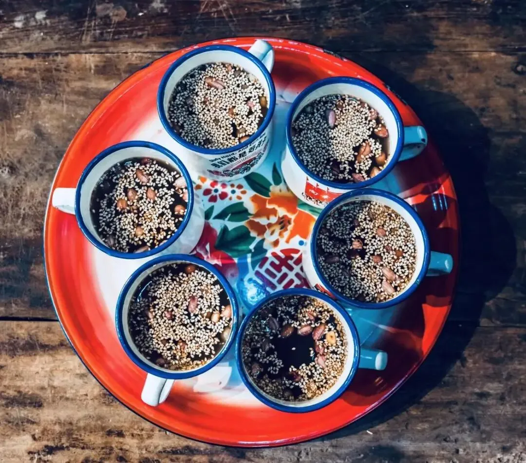 透明的大玻璃杯里,茶叶、豆子、芝麻混作一团,不像家乡的茶那般澄澈透亮,只一眼,便生出几分疏离。当时心想,茶本该是清清淡淡的,怎么能什么东西都放呢?印象深刻的是这杯茶花了我15块大洋,虽然不好喝,但是又心疼花了钱,硬是喝掉三分之二。