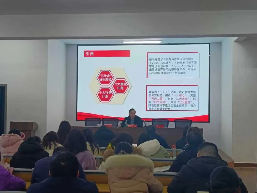 谭绍清以《锚定教育强市新坐标 凝聚二次创业新动能》为题,系统梳理全会关于“十五五”规划《建议》的核心要义,重点解读“办好人民满意的教育”专章部署,结合我市《教育强市建设规划纲要(2025—2035年)》提出的“一个中心、两大主题、三大课堂、四大活动、五大重点”行动路径,强调要把“质量与安全”双主题贯穿办学治校全过程,把思政、心育、智慧“三大课堂”建成立德树人主阵地,为打造泛湘西北区域教育中心贡献基层力量。