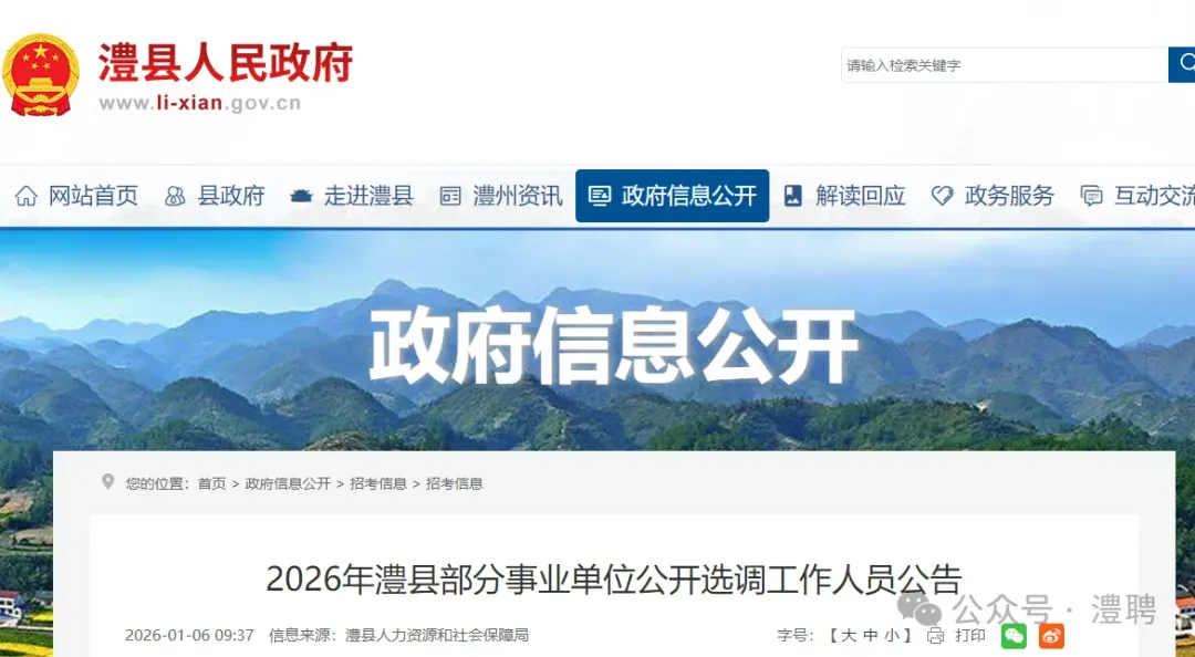 (十)公示及聘用。根据考试、体检和考察结果,由选调单位及主管部门确定选调对象,并按要求在澧县人民政府网站进行公示,公示期不少于5个工作日。公示期满无异议的,按规定办理相关聘用手续。
