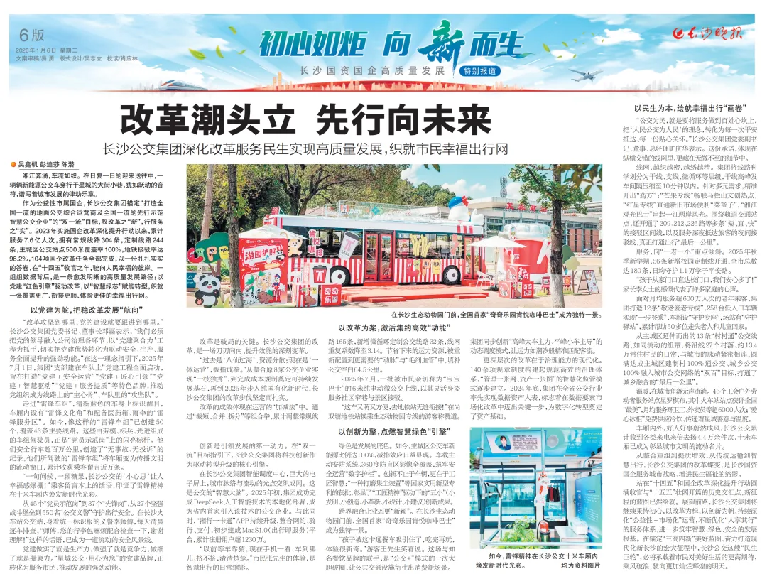站在“十四五”和国企改革深化提升行动圆满收官与“十五五”壮阔开篇的历史交汇点,新征程的蓝图已然绘就。展望前路,长沙公交集团将继续秉持初心,以改革为楫,以创新为帆,持续深化“公益性+市场化”运营,不断优化“人享其行”的服务体系,进一步筑牢智慧、绿色、安全的发展根基。在锚定“三高四新”美好蓝图、奋力打造现代化新长沙的宏大征程中,长沙公交这艘“民生巨轮”,必将承载着市民对美好生活的更高期待,乘风破浪,驶向更加灿烂辉煌的明天。(来源:长沙晚报 通讯员:彭迪莎 陈潜)