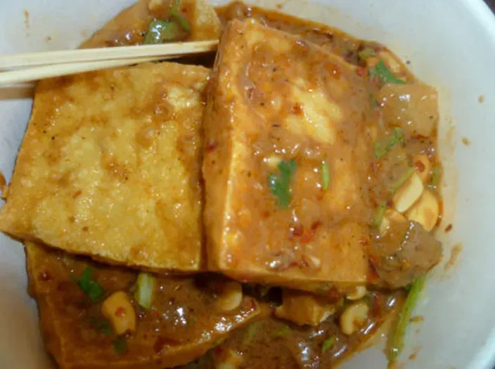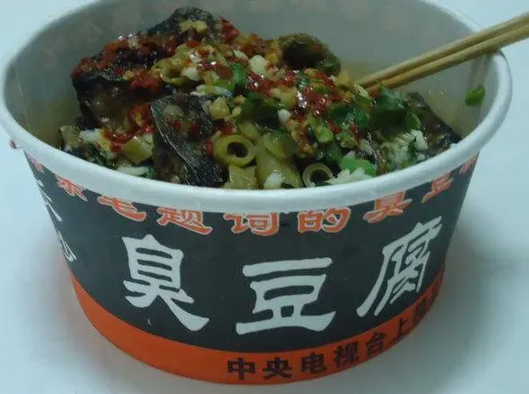 那么,这闻着臭吃着香的臭豆腐是怎样的一个由来呢?相传清朝康熙八年,有个江南到京赶考的 金榜落第,闲居在会馆中,欲返归故里,交通不便,盘缠皆无,欲在京攻读,准备再次应试,又距下科试期 甚远,无奈只得在京谋生计.其父在家乡开设豆腐坊,幼年曾学过做豆腐.于是便在会馆附近租赁了几 间房,购置一些简单的用具,每天磨上几升豆子的豆腐,沿街叫卖.时值夏季,有时卖剩下的豆腐很快就 会发霉,无法食用,于是就将这些卖剩下的豆腐切成小块,稍加晾晒,寻得一口小缸,用菜卤腌了起来.之 后歇伏停业,一心攻读,渐渐把此事忘了.秋风送爽,又逢京试,才想起那缸腌制的豆腐,赶忙打开缸盖, 一古臭气扑面而来,取出一看,豆腐已成青灰色,用口尝试,觉得臭味之余却蕴藏着一股浓郁的香气,虽 非美味佳肴,却也耐人寻味,送给邻里品尝,都称赞不已.尔后该秀才屡试不中,只得回家,在家中的豆腐 作坊按过去的试做的方法加上本地的一些苋菜做起臭豆腐来.经油炸或清蒸其味无穷鲜美,从此有了 臭豆腐闻着臭吃着香的美名。