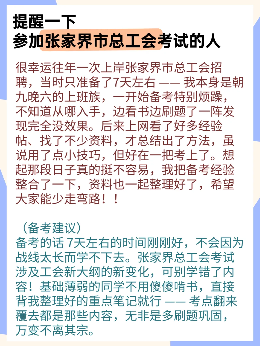 🍒姐妹们注意!2025湖南张家界市总工会招14名工会社会工作者,时间紧迫,还没备考的宝子赶紧动起来,备考中的也要加快脚步咯~
