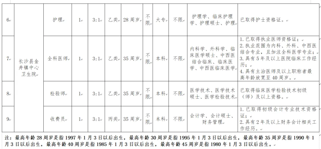 根据《长沙市事业单位公开招聘人员实施办法(试行)》(长人社规〔2024〕5号)和《长沙县卫健系统编外医务人员管理办法(试行)》(长县卫政发〔2024〕3号)要求,结合单位实际,经研究决定,面向社会公开招聘编外工作人员9名,现就招聘有关事项公告如下: