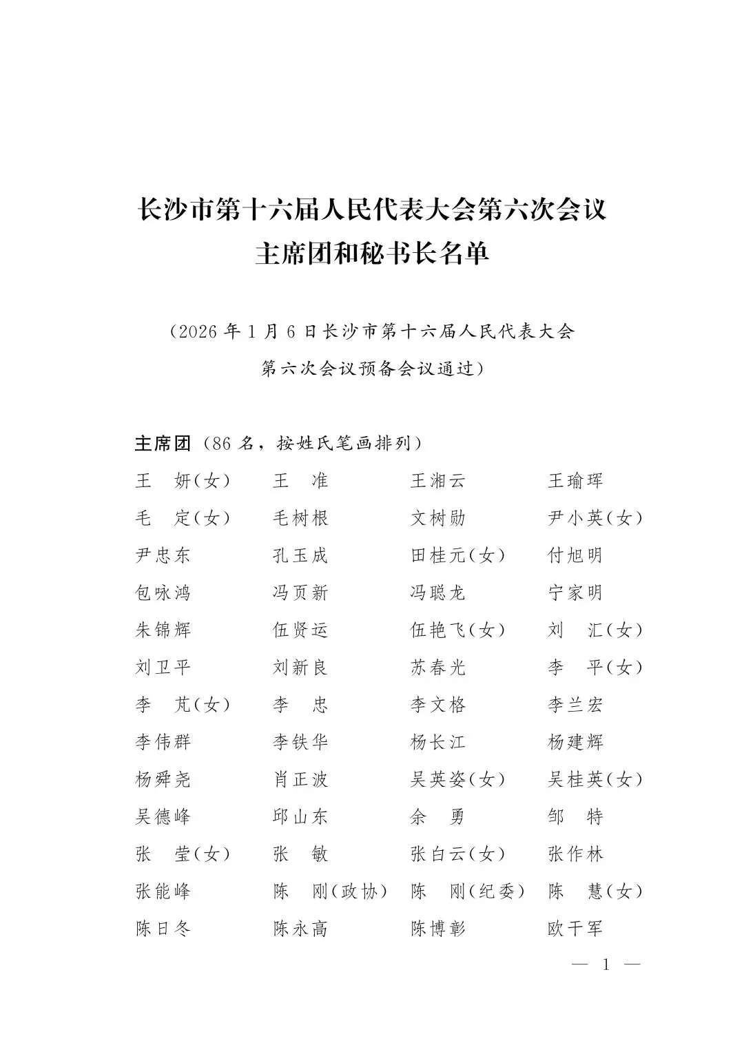 >长沙市第十六届人民代表大会第六次会议主席团和秘书长名单