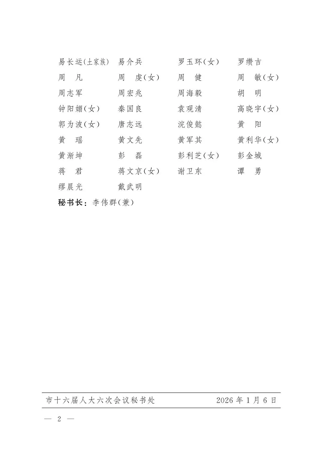 长沙市第十六届人民代表大会第六次会议副秘书长名单