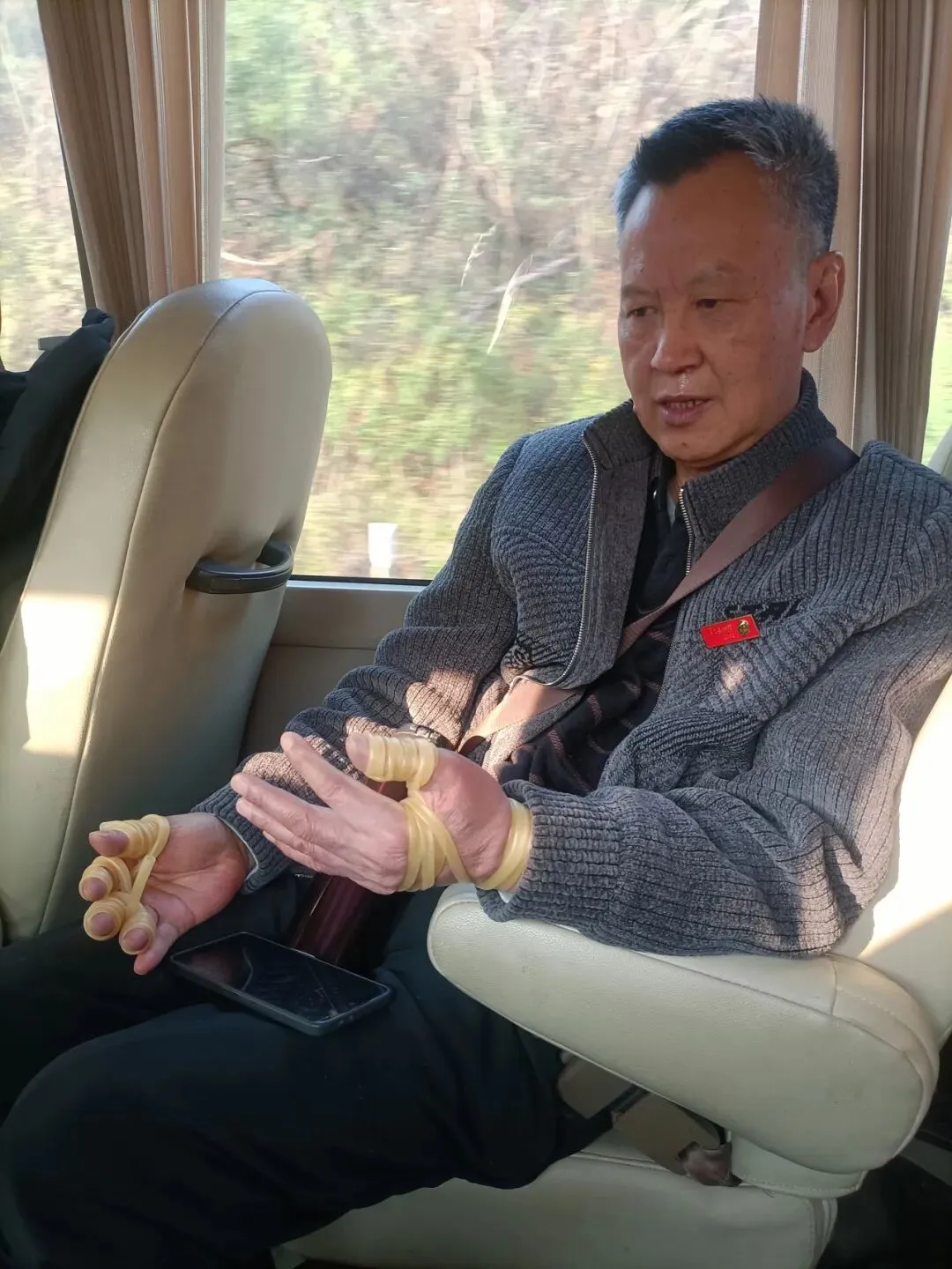 19号我们去韶山瞻仰毛主席故居路上,也帮曾老爹绑绑手脚体验了一把。曾老爹嘱咐我写篇捆绑文章投到“罾事物语”公众号。