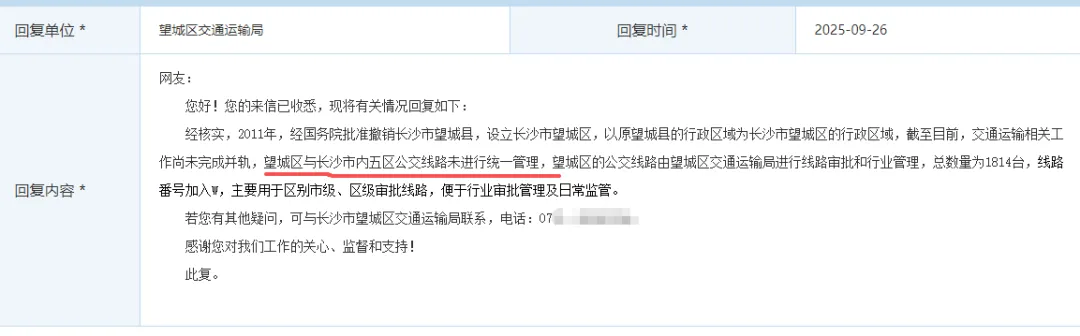 2025年的最后几天,长沙市交通运输局、望城区交通运输局、长沙公交集团联合发布《关于变更湘江新区部分公交线路运营主体及线路番号的通告》。