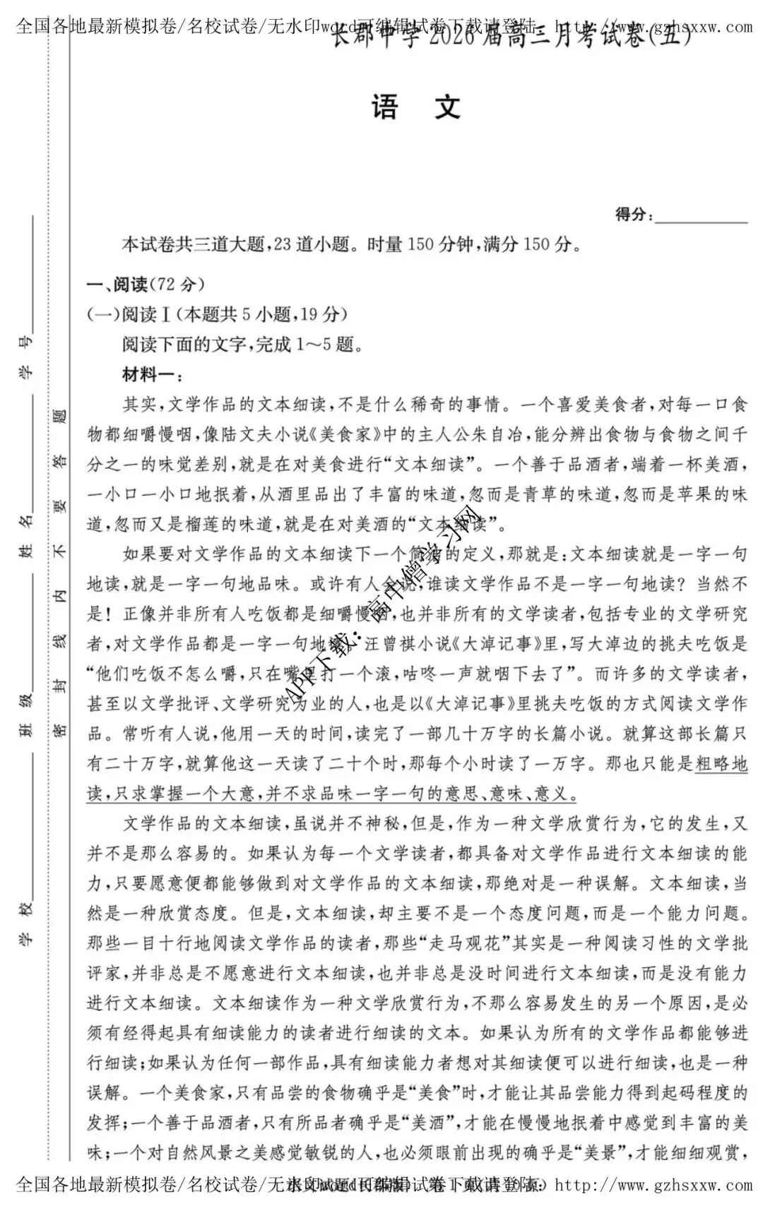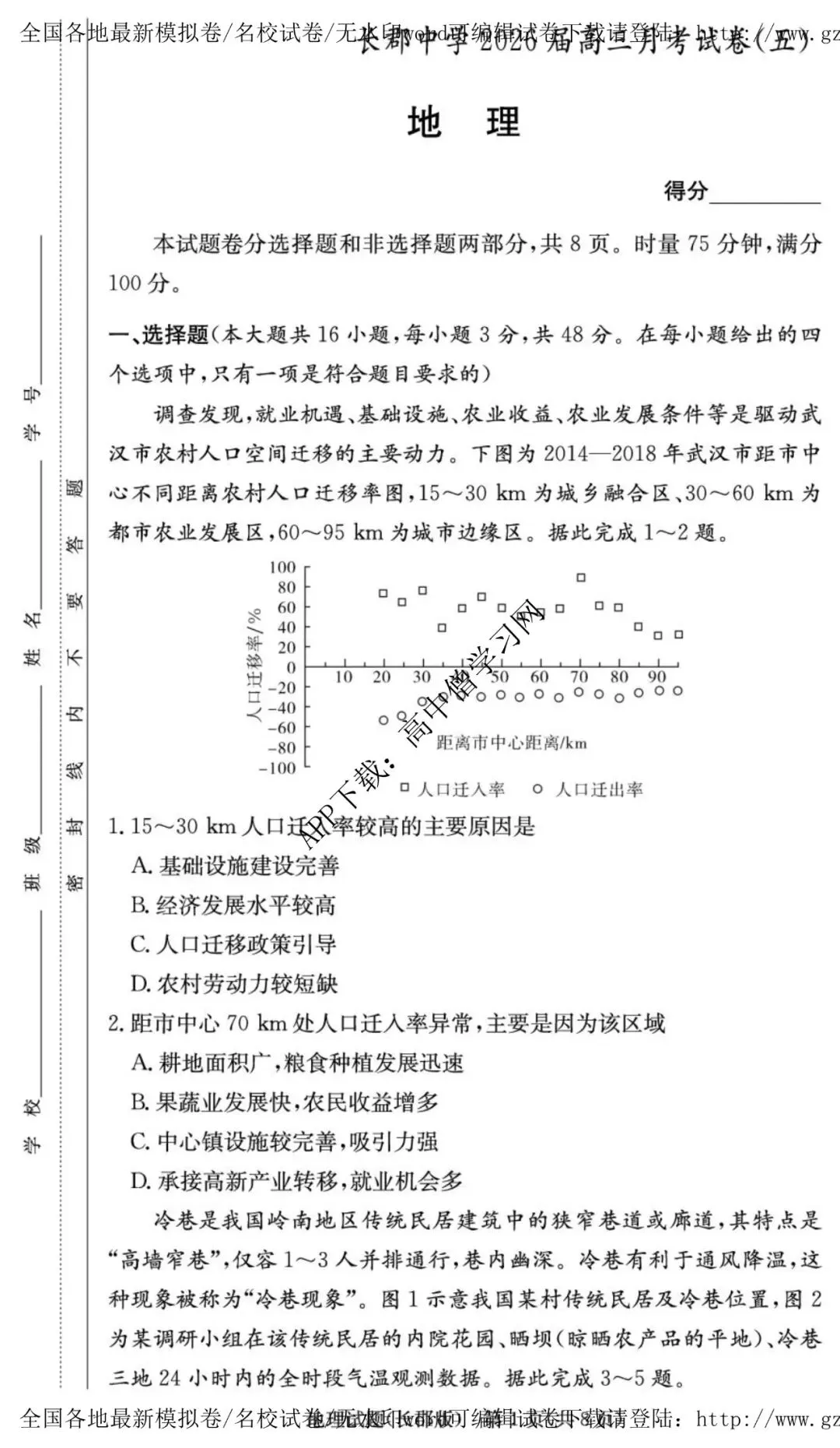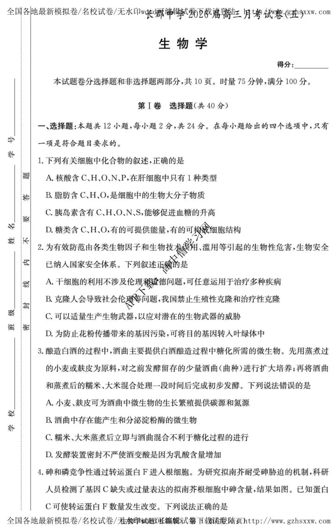 本篇给大家分享的是2026湖南省长沙市长郡中学高三上学期月考(五)