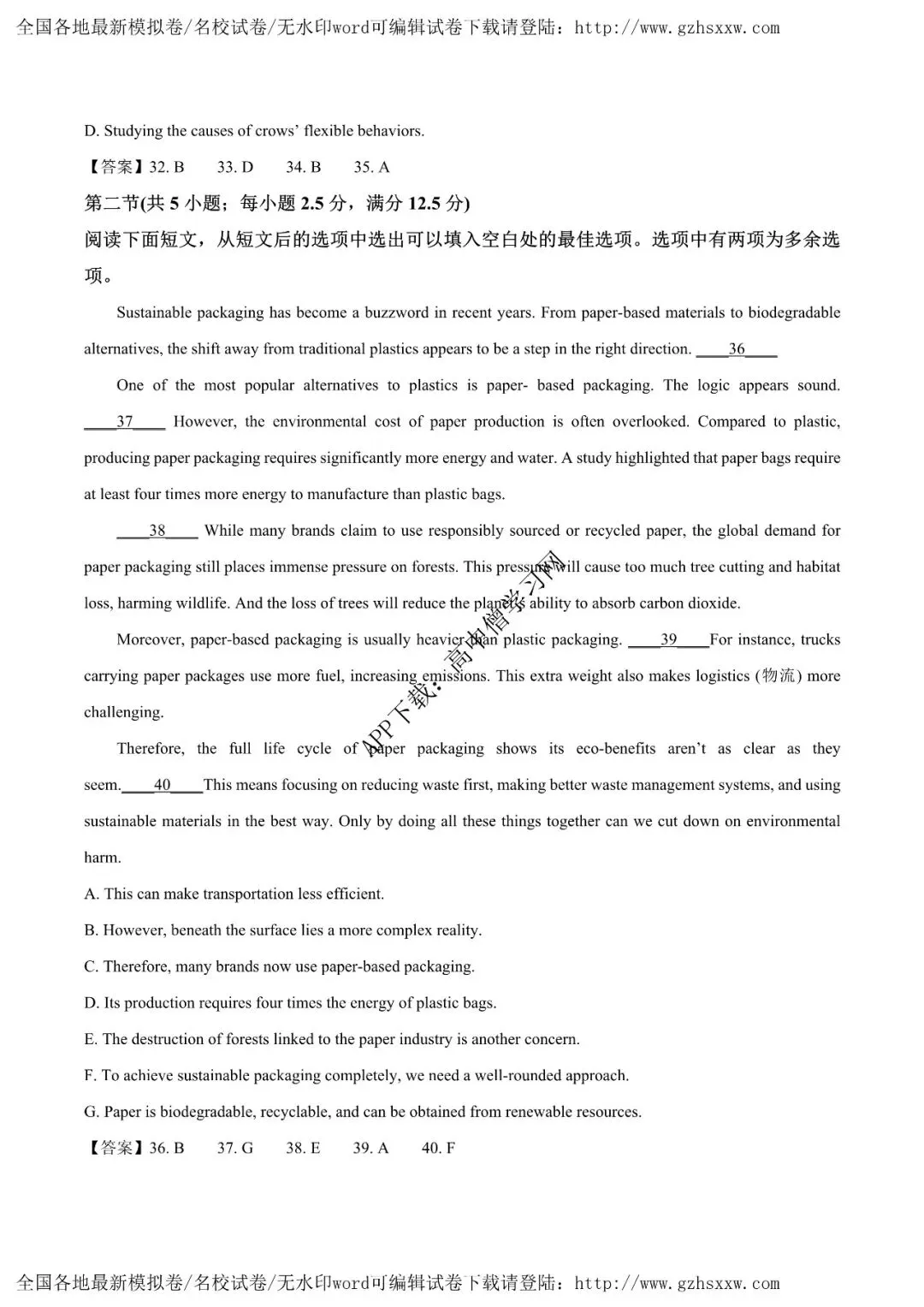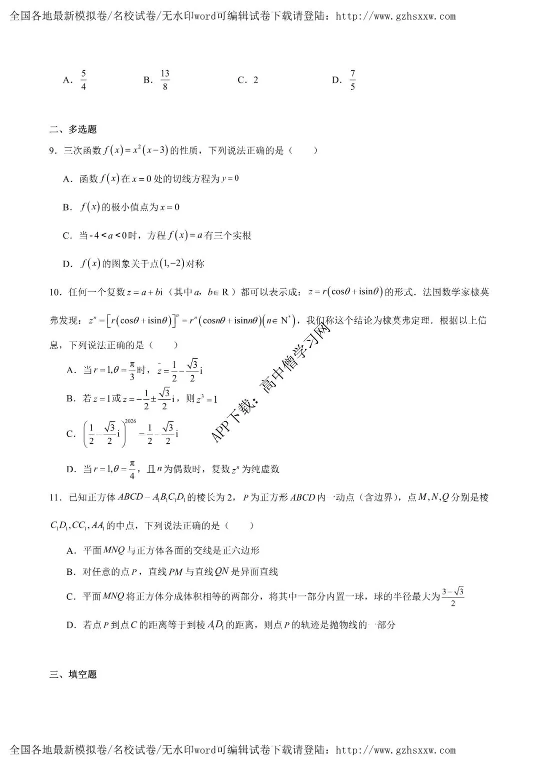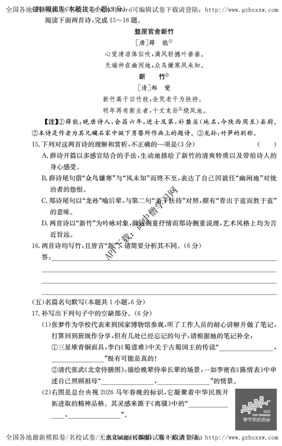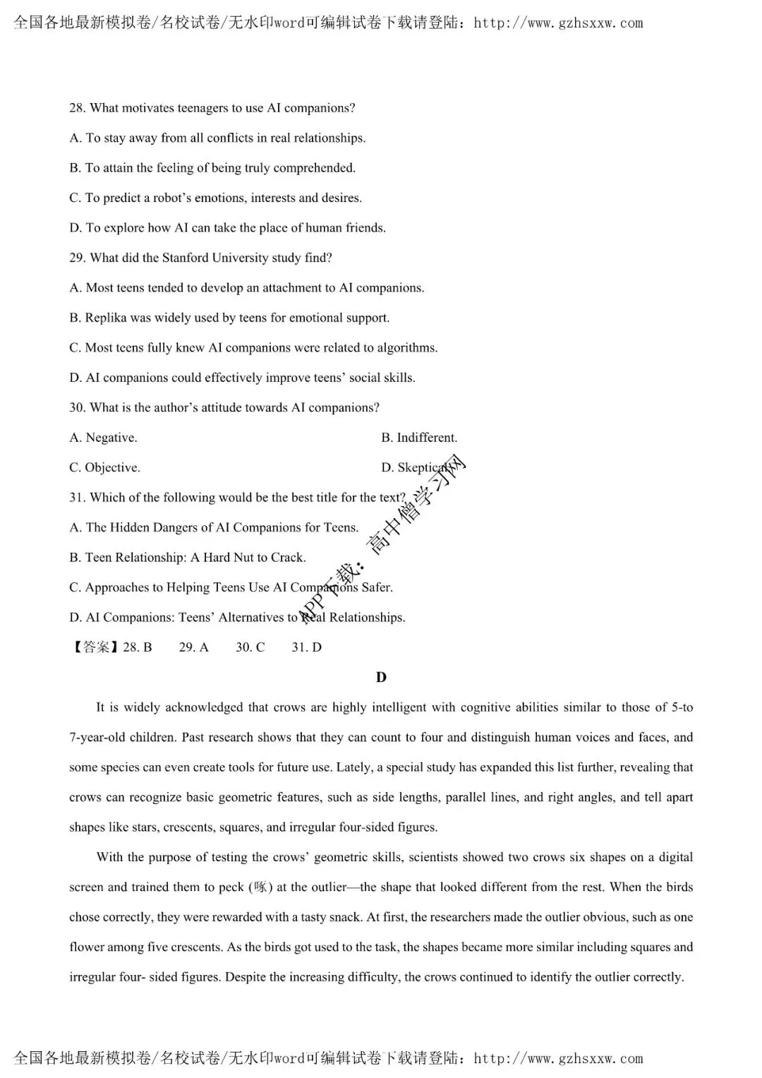 限于篇幅,本文只展示试题资料,全科试题及答案下载:APP”高中僧学习网“或者官网www.gzhsxxw.com (复制链接打开浏览器打开)查看下载