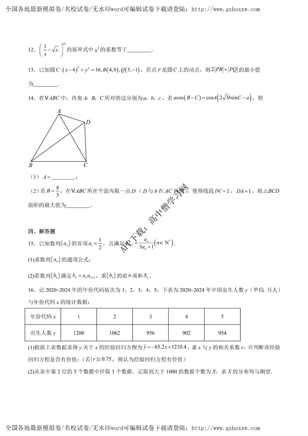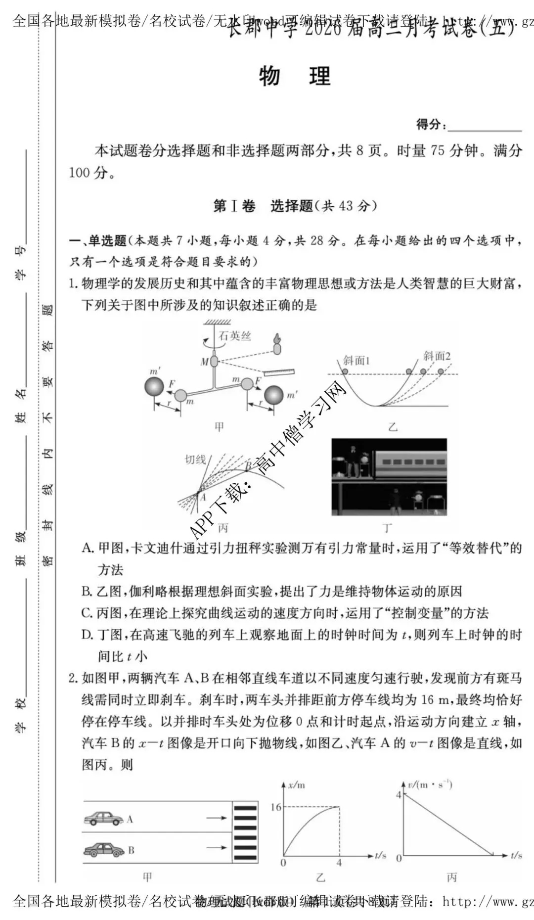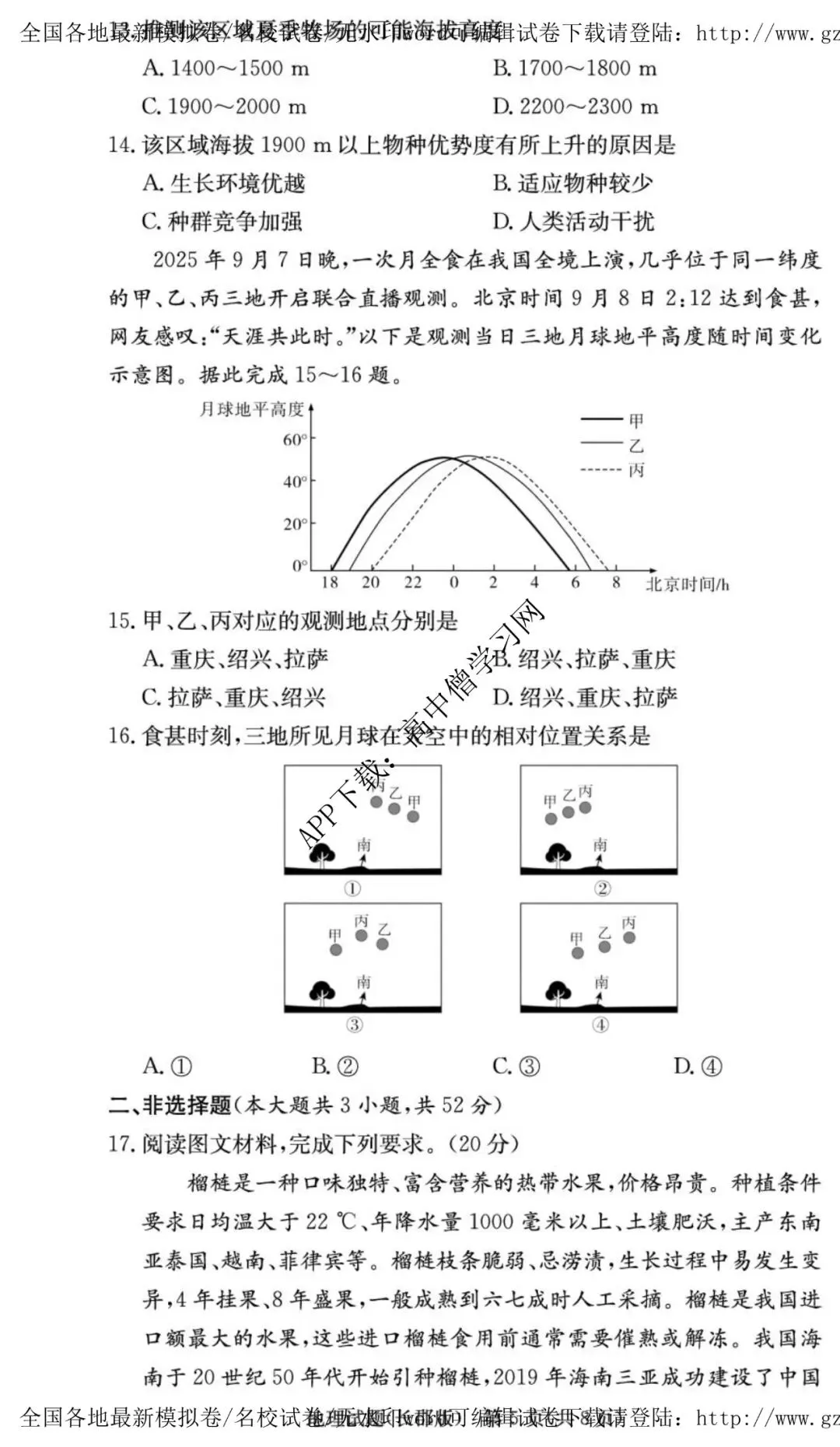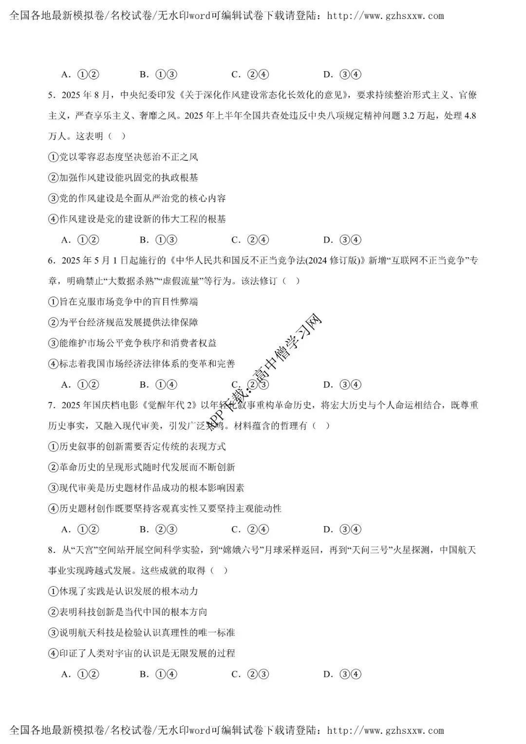 限于篇幅,本文只展示试题资料,全科试题及答案下载:APP”高中僧学习网“或者官网www.gzhsxxw.com (复制链接打开浏览器打开)查看下载