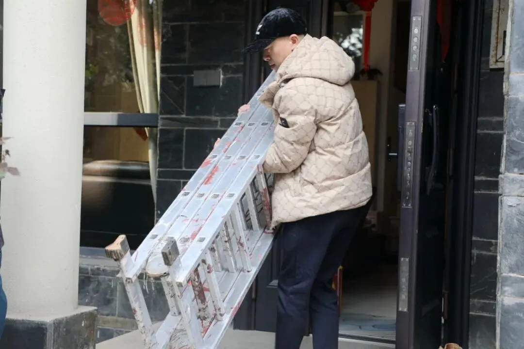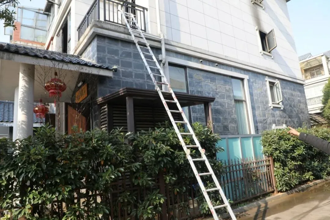 住在西边的邱大哥闻声立刻跑回家,扛出折叠长梯。众人七手八脚,迅速将梯子拉开、固定、延伸,长长的梯子如同一座生命之桥,稳稳地搭在了三楼的窗台前。在众人的合力接应下,被困的女主人顺着梯子,一步步安全落到地面。