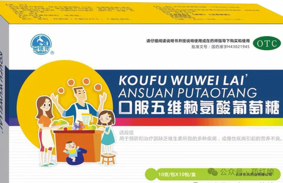 【产品成份】本品为复方制剂,每克含葡萄糖0.25克,盐酸赖氨酸1毫克,维生素B10.08毫克,维生素B20.02毫克,维生素B60.024毫克,烟酰胺0.2毫克,泛酸钙0.06毫克,辅料为:蔗糖、柠黄、香兰素。