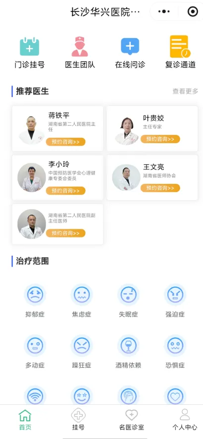 医院官方小程序:搜索『长沙华兴医院精神心理科』小程序,依次点击:首页 - 推荐医生“李小玲”- 预约