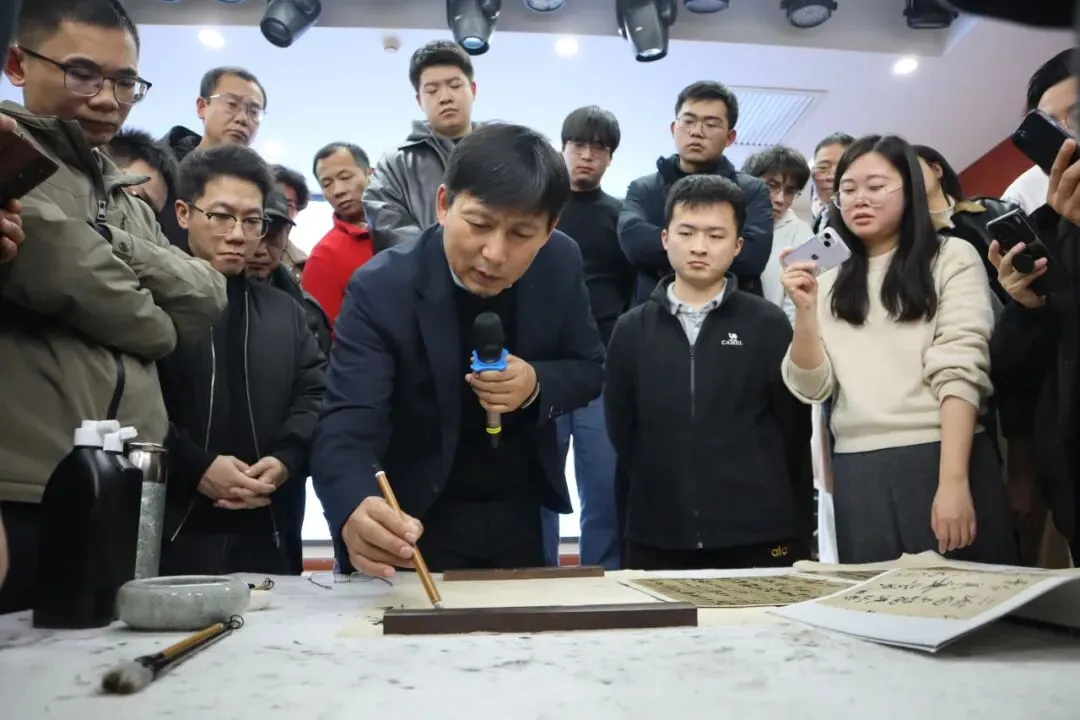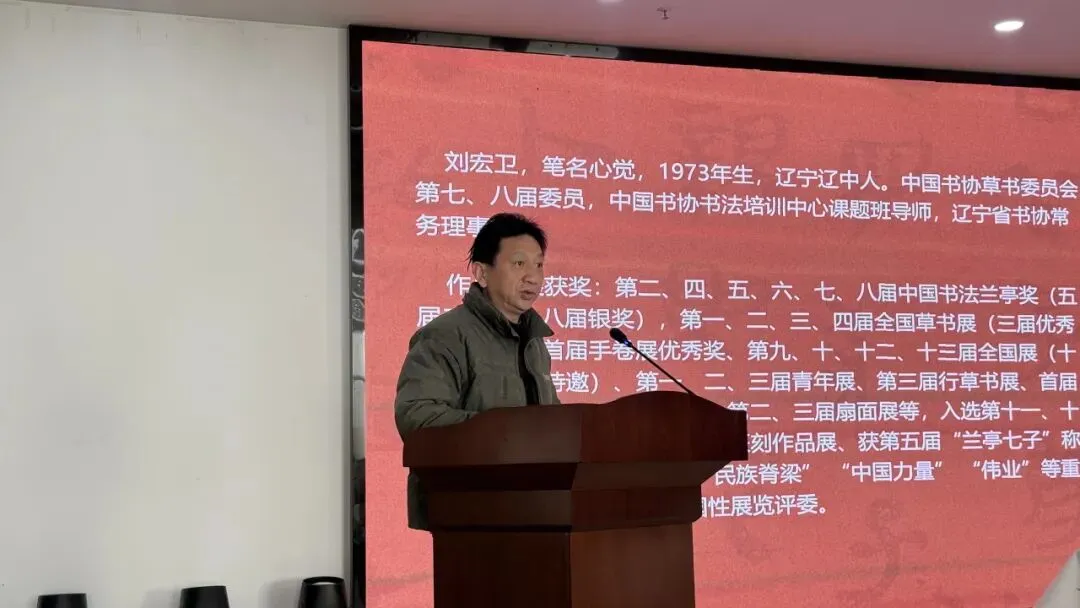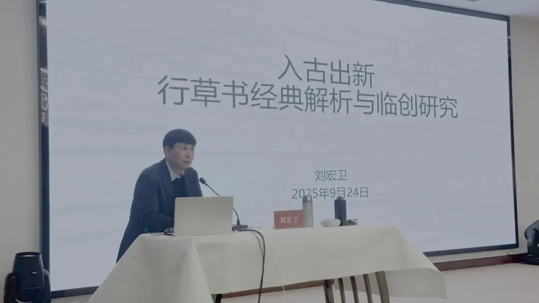 在为期两天的授课中,刘宏卫先生以行草书经典碑帖、临创转换研究为核心,围绕“重视‘文’对书法审美及自身修为的影响”、“向经典深处迈进”以及“‘入古出新’的行草书创作”等关键命题进行系统教学。刘宏卫先生结合自身的临创心得,为学员梳理行草书脉络,依据学员擅长的字帖,针对性开展临摹方法与创作方向的指导。在引导学员技艺锤炼的同时,强调实践是检验真理的唯一标准,要在文化中沉淀厚度,要在学识中攀登高度。