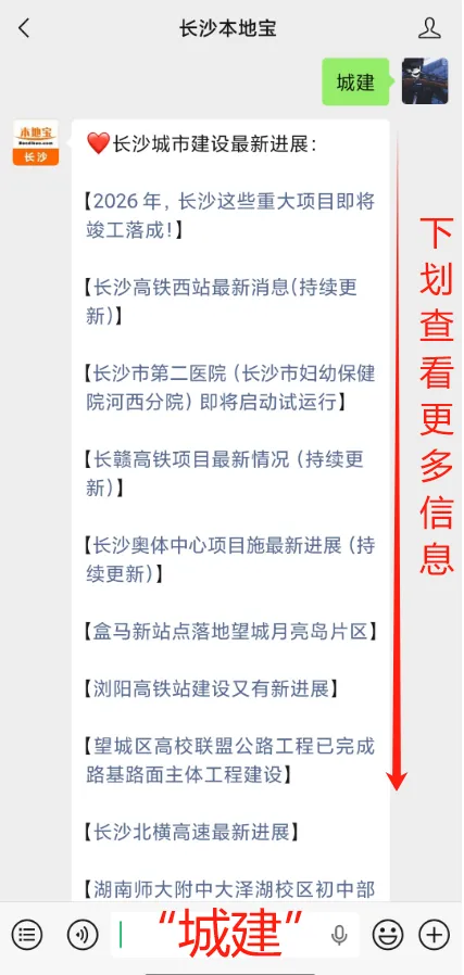 在【长沙本地宝】公众号对话框发送关键词: