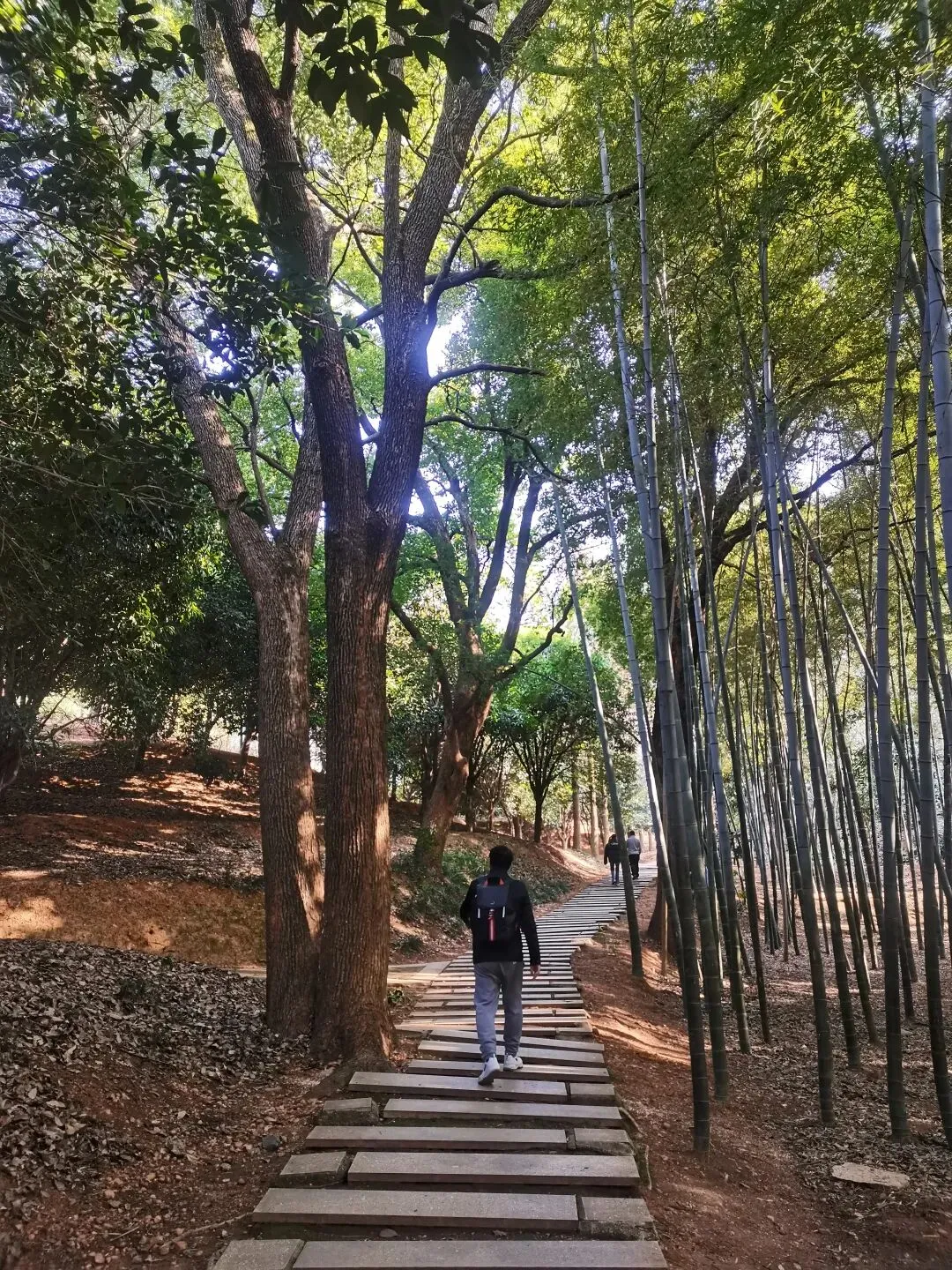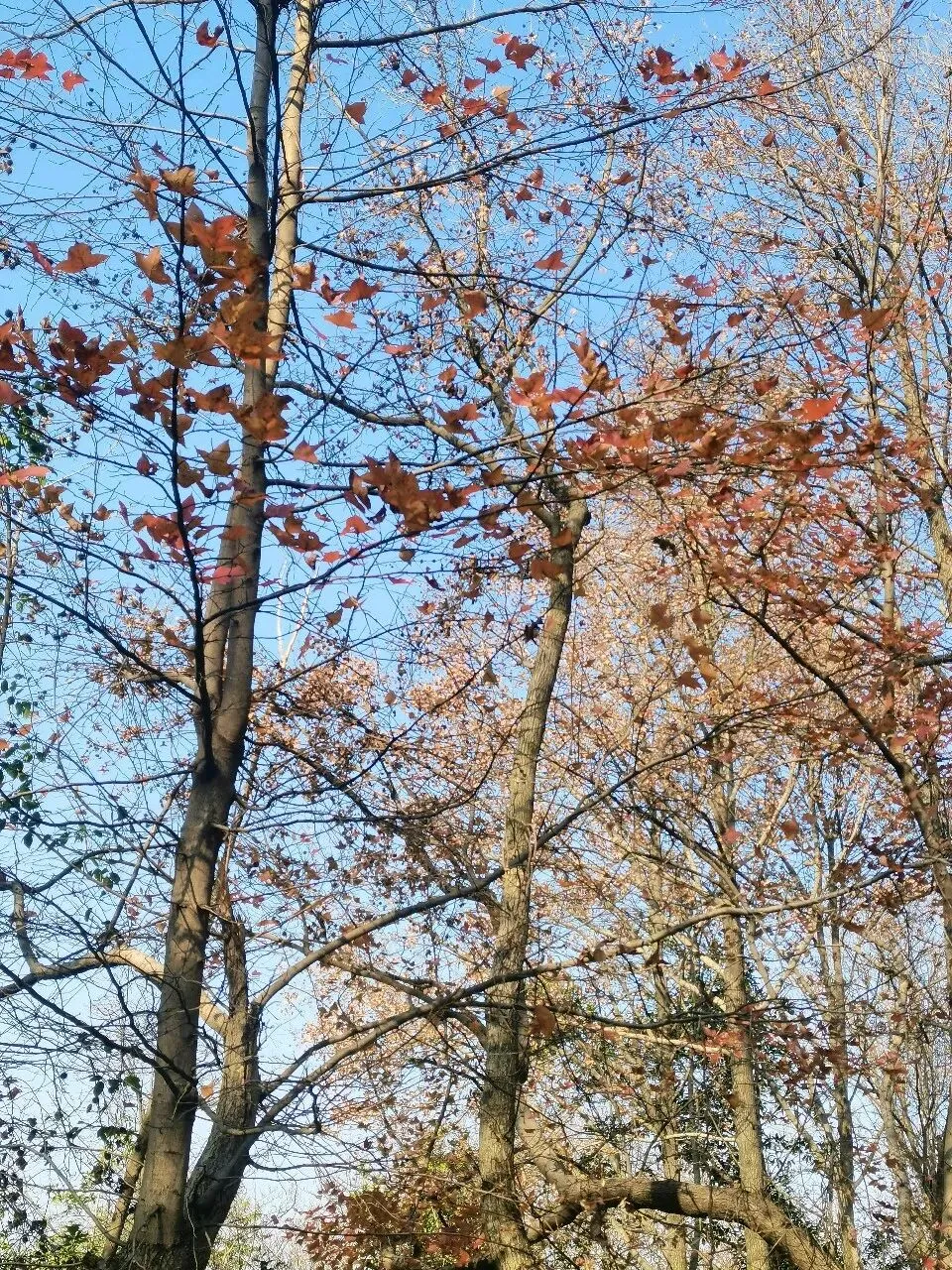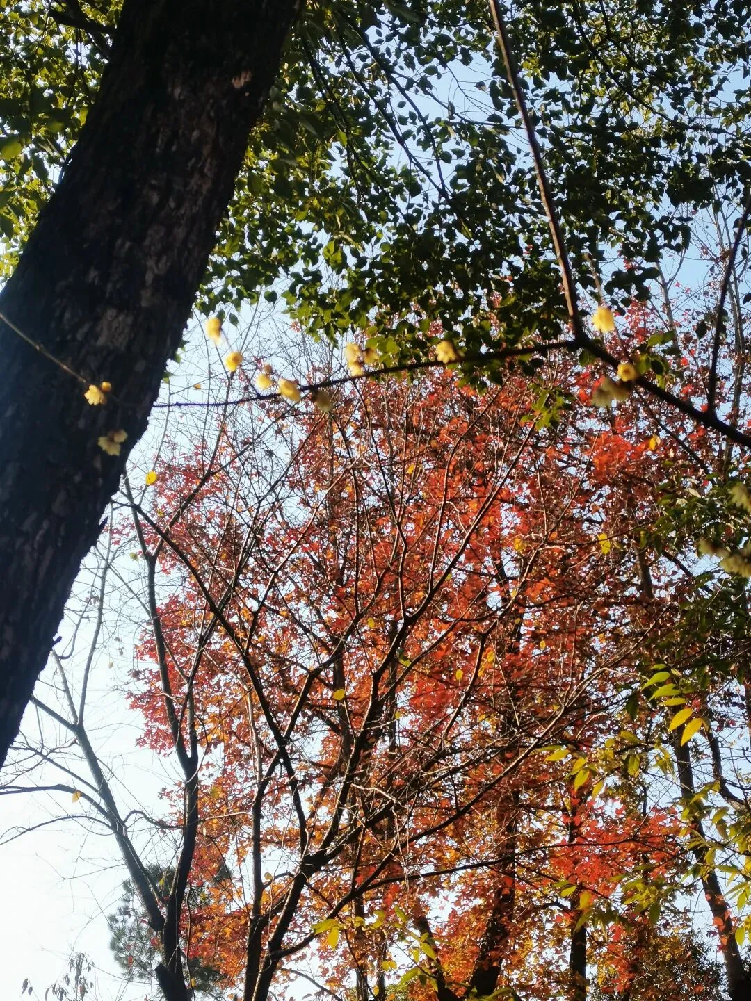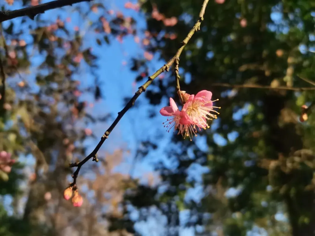 枫香树的红叶还是顽强的占据在枝头,在蓝天的映忖下红得醒目。 竹林依然翠绿得可人,漫步在曲径通幽的林间小道上,伴随着微风吹过竹林的沙沙声,令冬日的游走更是惬意。 梅园里的腊梅已竞相绽放,悠悠的香气萦绕在鼻尖,让人忍不住深吸一口气再深吸一口,仿佛这样就能把腊梅的香气存储在鼻尖、存储在记忆深处。