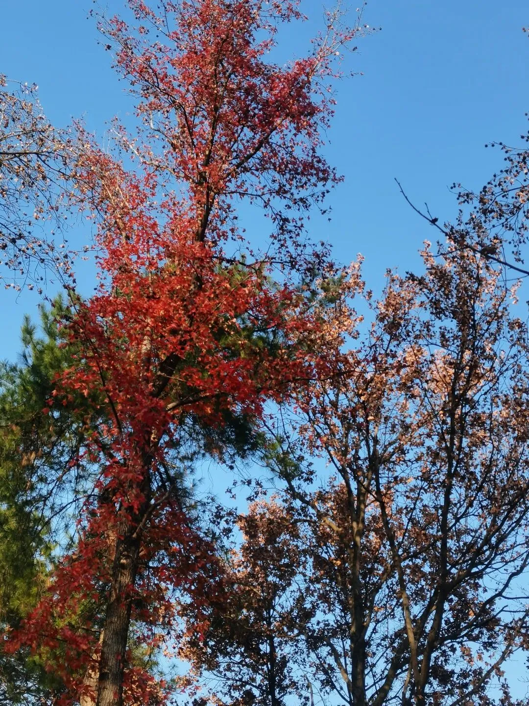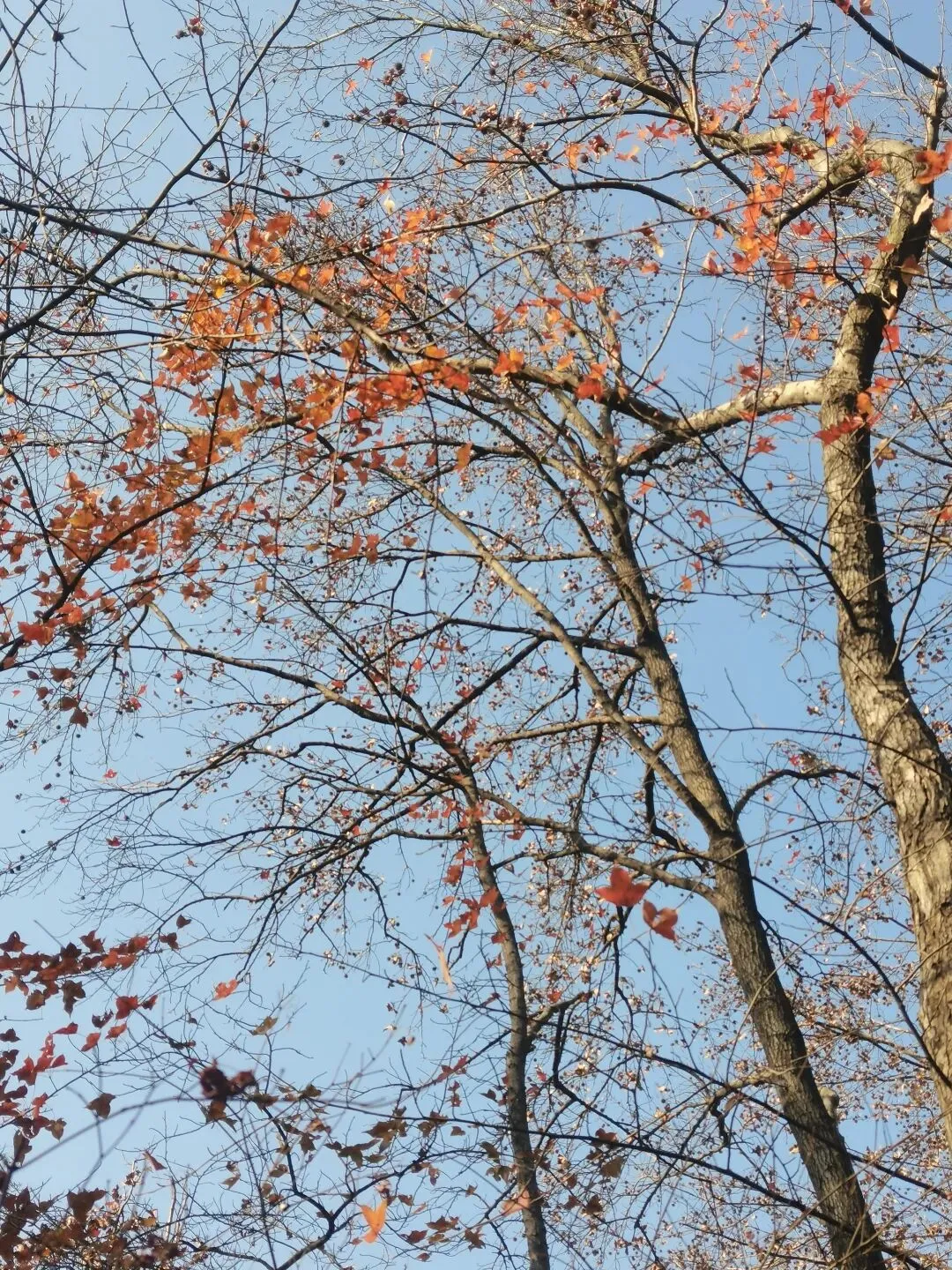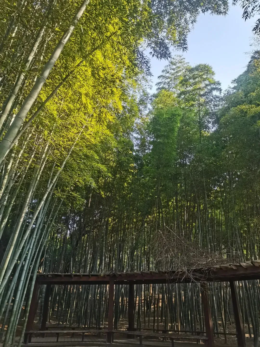 枫香树的红叶还是顽强的占据在枝头,在蓝天的映忖下红得醒目。 竹林依然翠绿得可人,漫步在曲径通幽的林间小道上,伴随着微风吹过竹林的沙沙声,令冬日的游走更是惬意。 梅园里的腊梅已竞相绽放,悠悠的香气萦绕在鼻尖,让人忍不住深吸一口气再深吸一口,仿佛这样就能把腊梅的香气存储在鼻尖、存储在记忆深处。