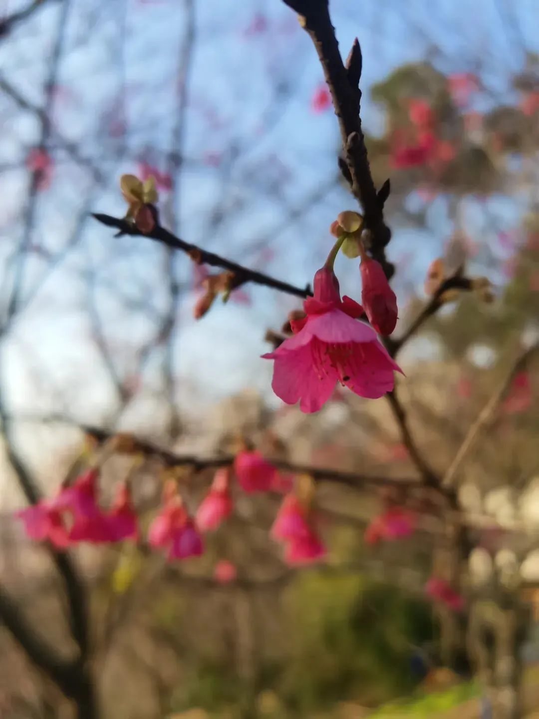春天的植物园樱花盛开的季节很美,如今樱花树只余曲曲弯弯的枝条在寒风中舞动,但也有它独具的韵味。