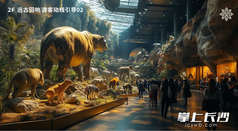 其中,海信广场改造项目尤为亮眼,其打造的MAYA·AI未来之城有望于2026年年底开门迎客。该项目以“科技+文旅”为核心,打造全球首个“全龄化、全场景全时空”沉浸式文旅地标。该项目总建筑面积达3.2万平方米,覆盖海信广场多层商业空间。在这里,游客不仅能近距离观察来自全球各地的珍稀动物,还能通过AI导览、VR技术等数字化手段,体验从寒武纪深海到侏罗纪雨林,再到22世纪火星基地的时空穿越之旅。项目涵盖生态科普、萌宠互动、主题餐饮等多元场景,将进一步丰富消费体验,成为长沙文旅商业新标杆。