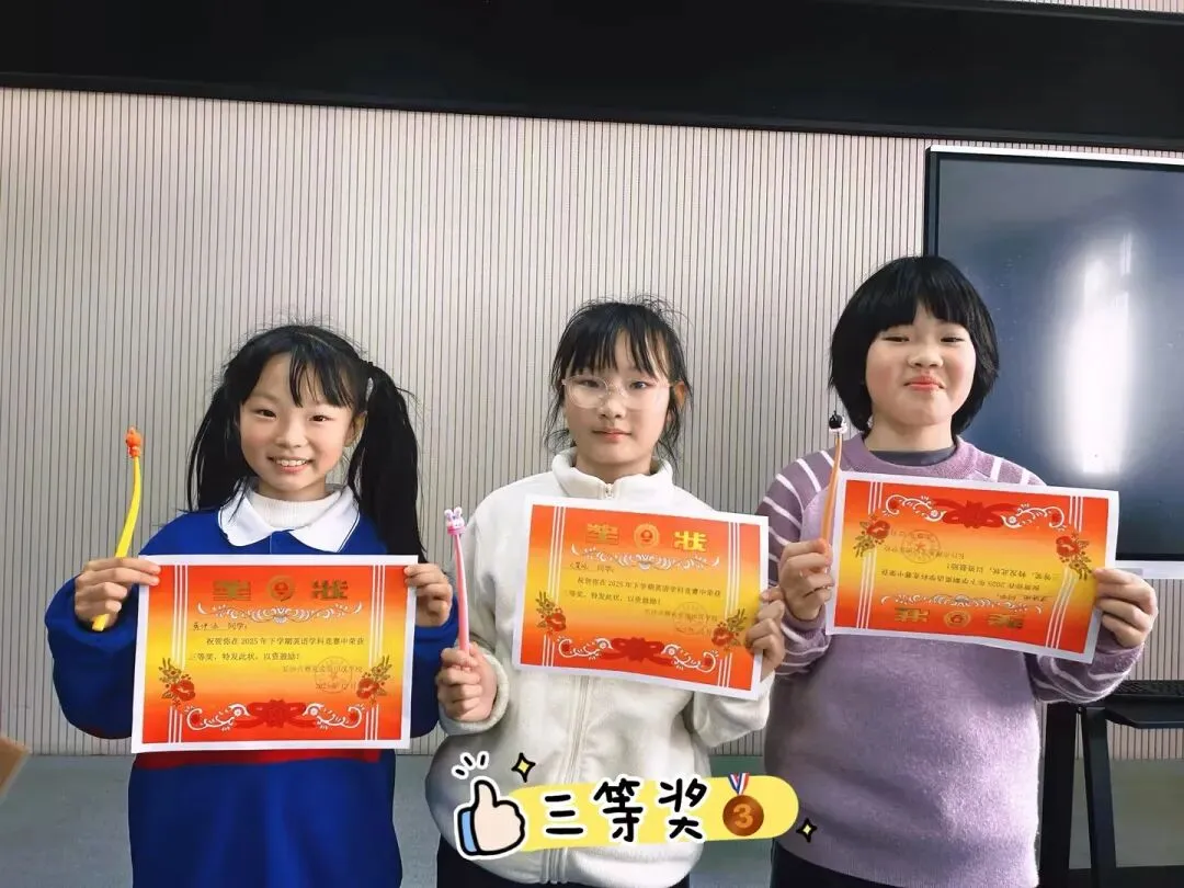 一等奖: 杨卓玥 张昊禹 饶子舜 黄悦潼 肖俊豪 何宇桐 李诺恒 李瀚 毕晨睿 二等奖 刘子菲 刘宁燚辰 张智罡 莫恒浠 余执方 刘宇轩 张诗茹 李誉楠 曾美希 旷浩蓁 张馨艺 汤梓瑶 罗晓江 李郑鑫 罗颢宸 钟瀚宇 伍俊熹 三等奖 刘睿诚 梁锦瑜 黄励媛 徐熙萌 彭佳媛 杨宇麒 单嘉懿 高艺航 蒋伊涵 田趣来 肖婉馨 谭竣嵘 文楚屹 刘卓逸 李铭轩 袁培轩 李茹玥