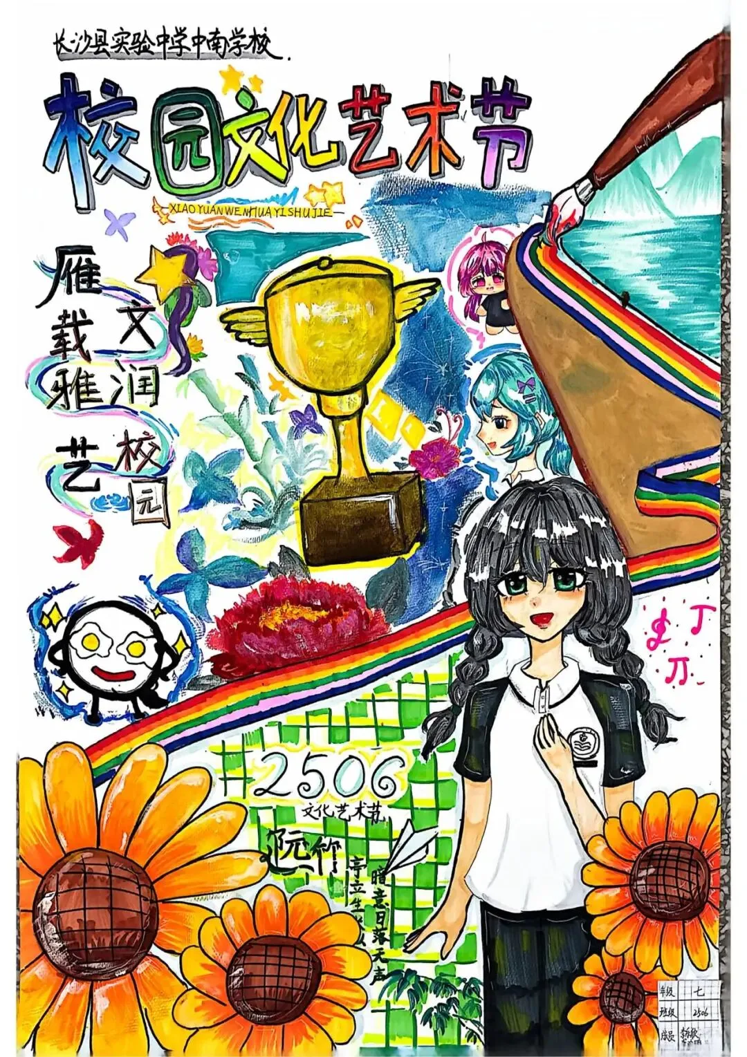 雁载雅艺 文润校园 | 长沙县实验中学这中南学校第二届校园文化艺术节美术作品展圆满收官