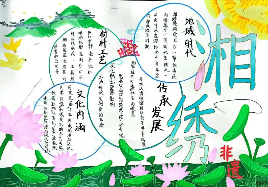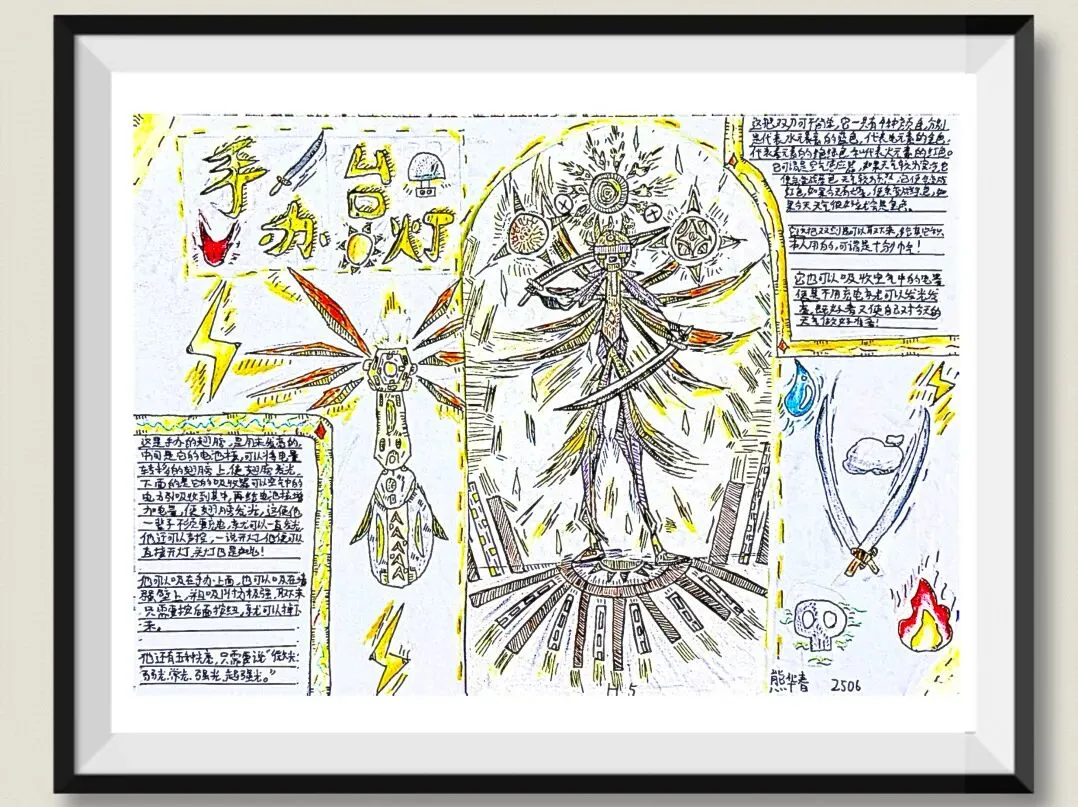 初二年级则呈现山石国画的墨韵与思维导图的脉络,奏响传统感性与现代理性的交响。