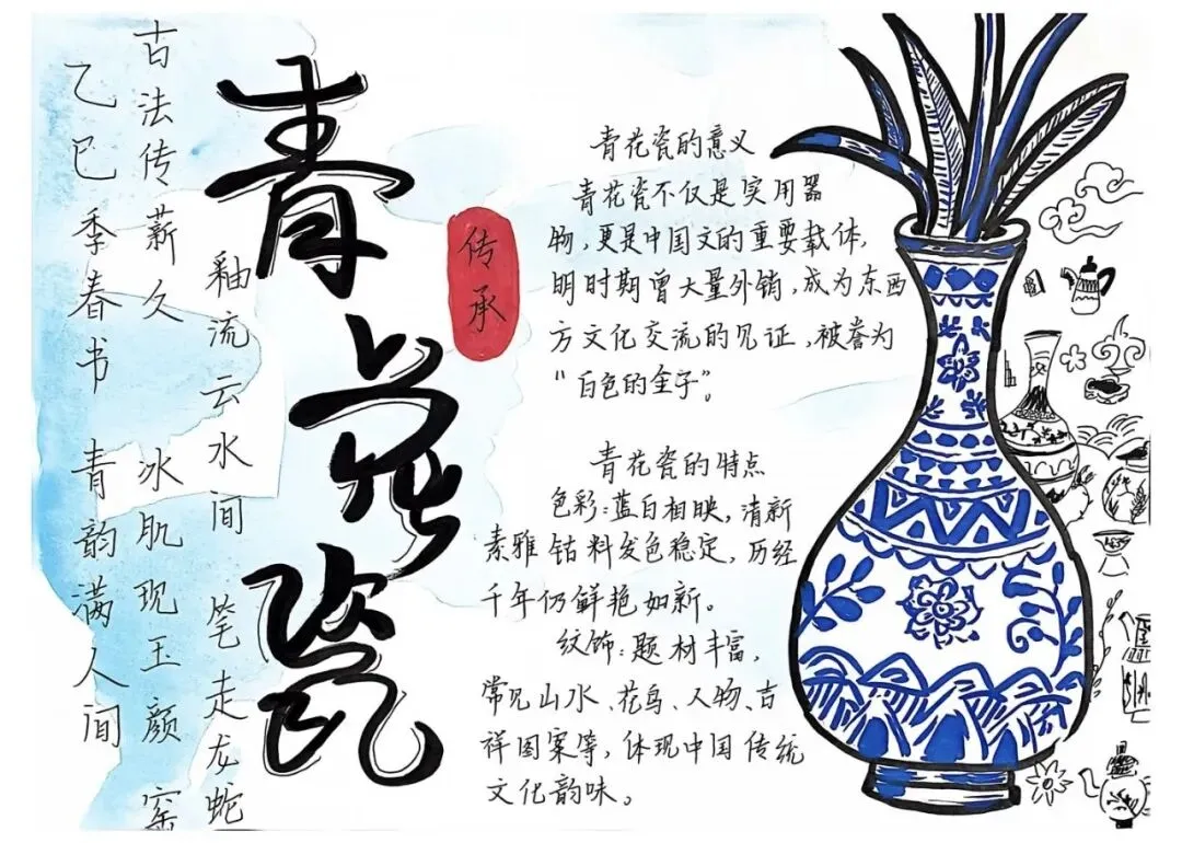 初一年级的产品设计图与非遗主题海报,实现了功能实用与文化意蕴的融合;
