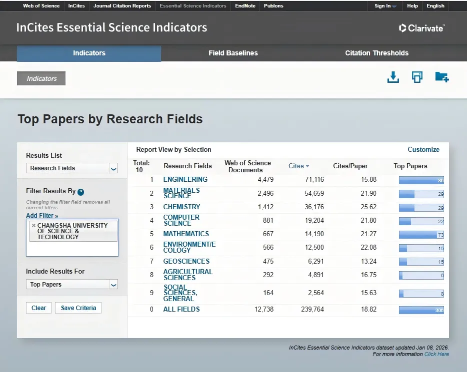 长沙理工大学地球科学学科成功进入ESI全球排名前1%!总计9个,省属高校第二