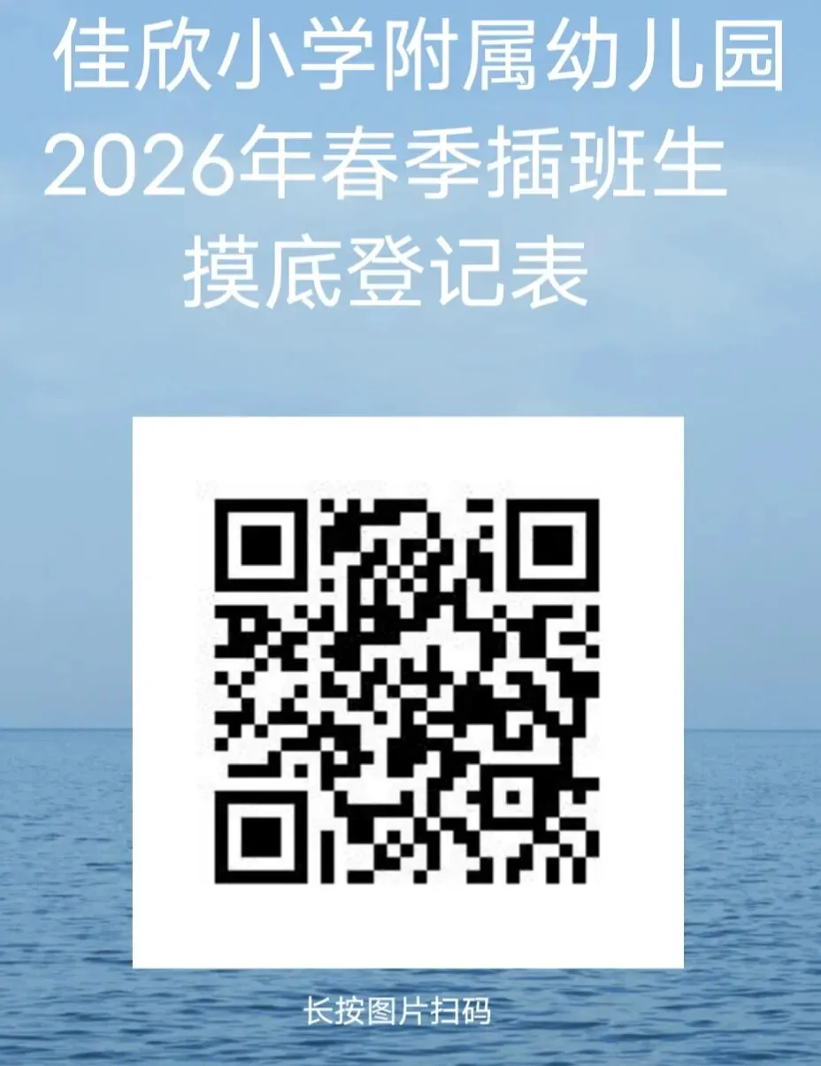 (二)报名方式:有入园意向的家长,可扫描下方二维码填写“佳欣小学附属幼儿园2026年春季插班生摸底登记表”。