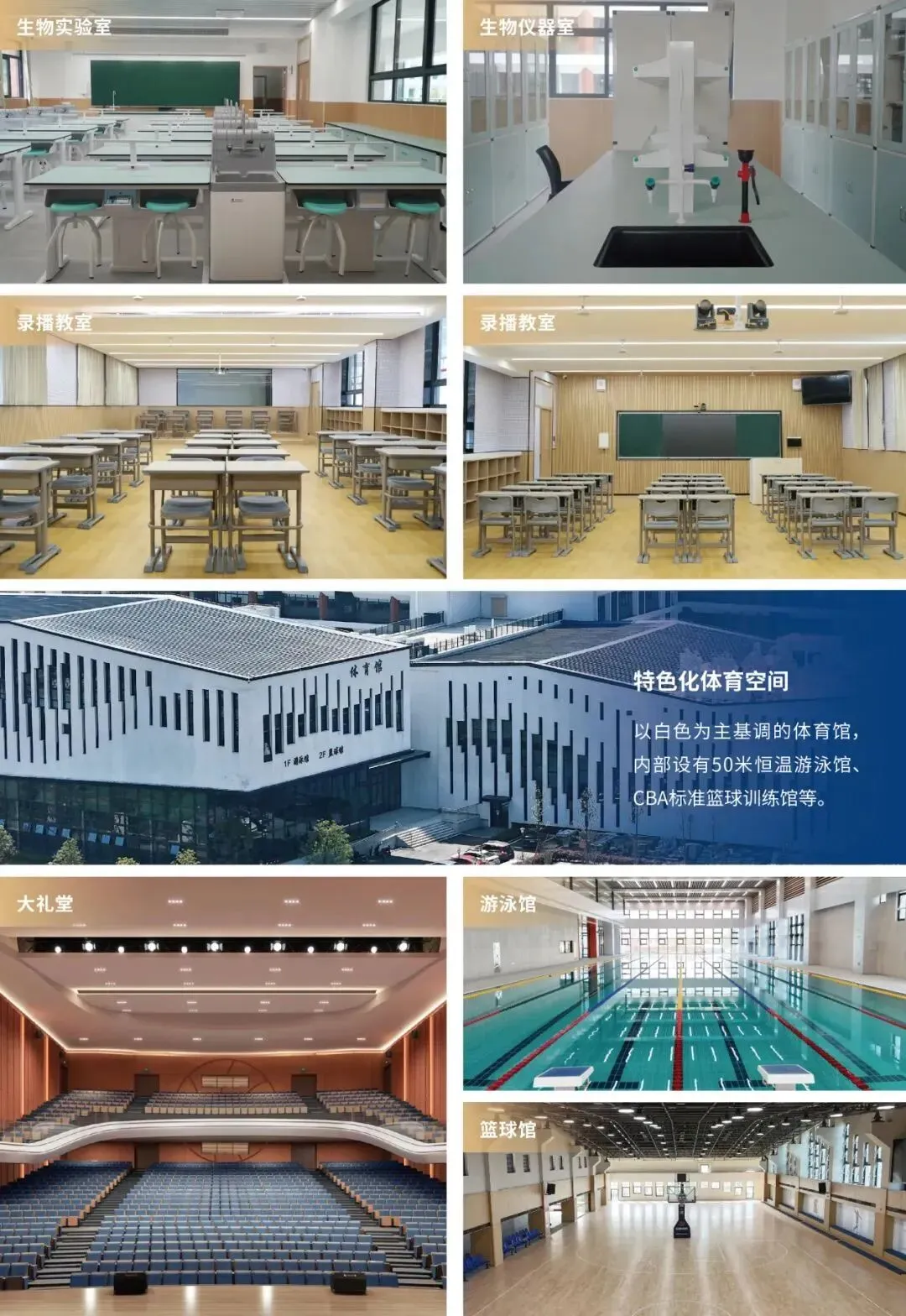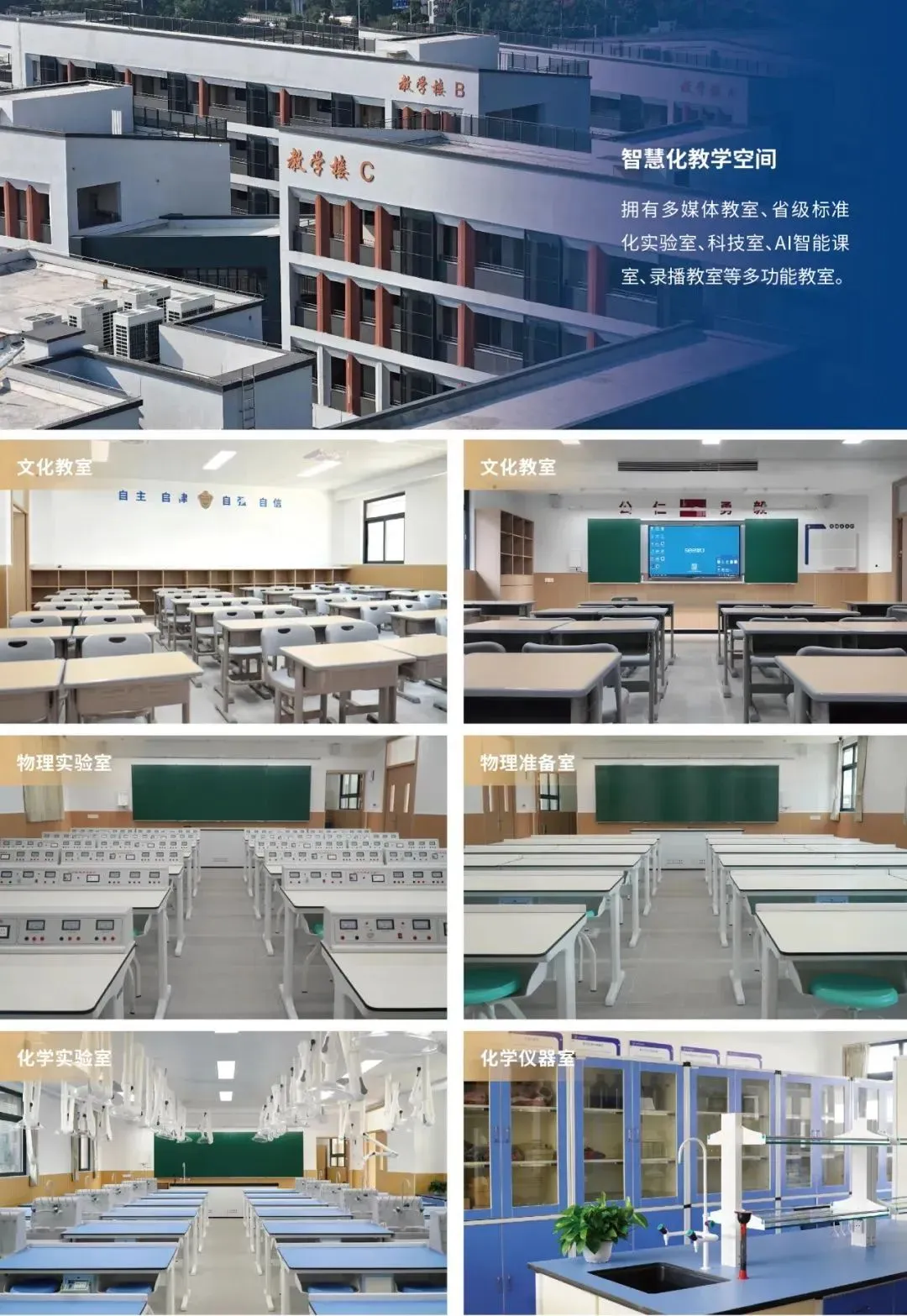 拥有多媒体教室、省级标准化实验室、科技室、AI智能课室等多功能教室