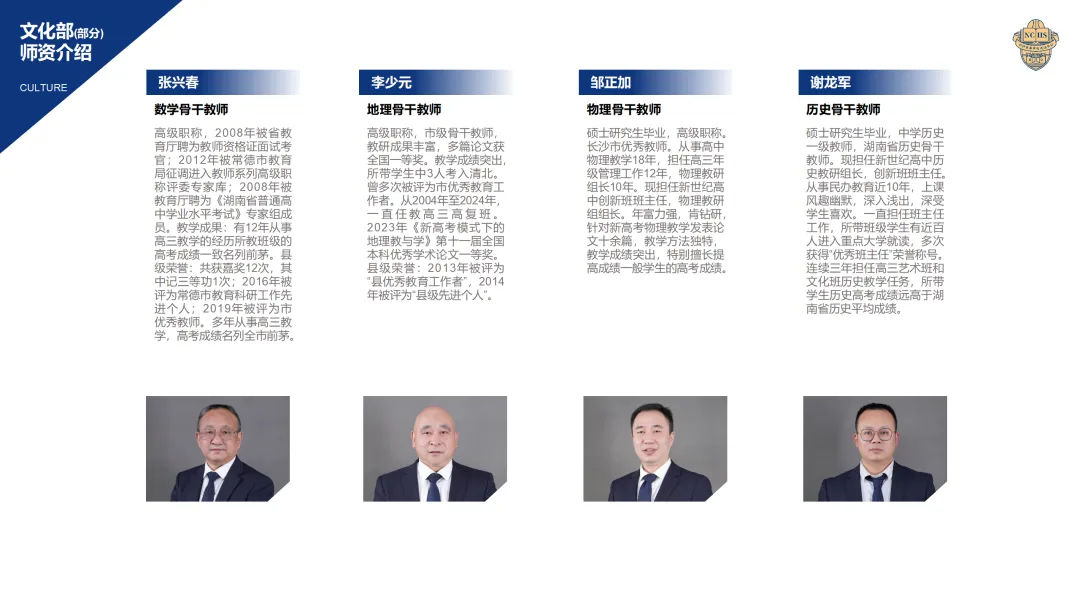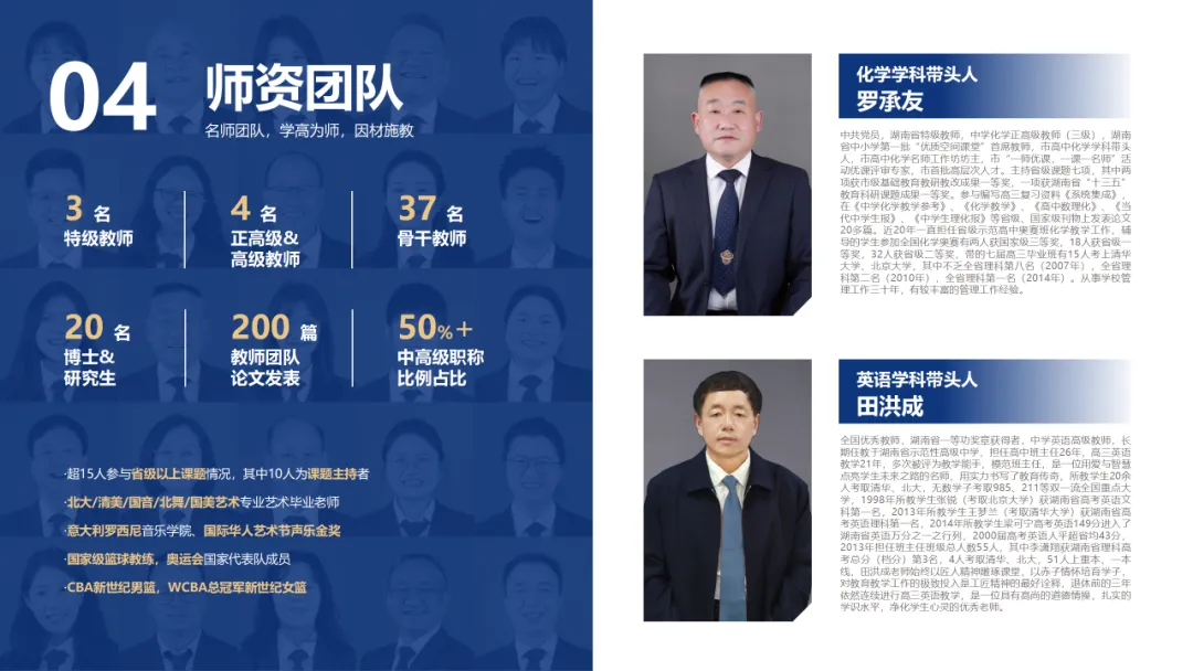 正高级教师 4人,特级教师 3 人