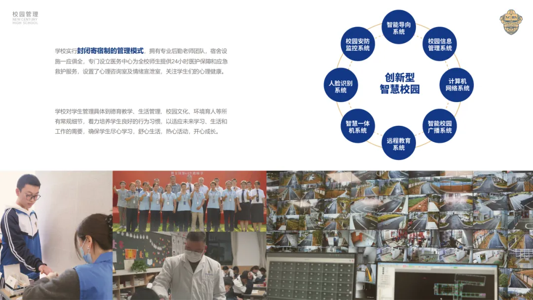 学校实行封闭寄宿制的管理模式,拥有专业后勤老师团队,宿舍设施一应俱全,专门设立医务中心为全校师生提供24小时医护保障和应急救护服务,设置了心理咨询室及情绪宣泄室,关注学生们的心理健康。